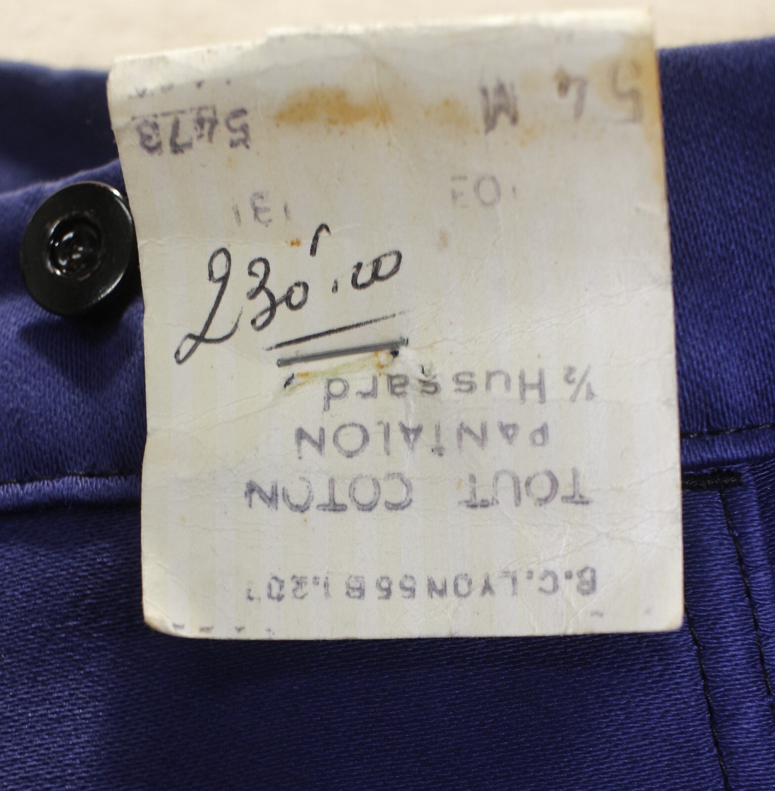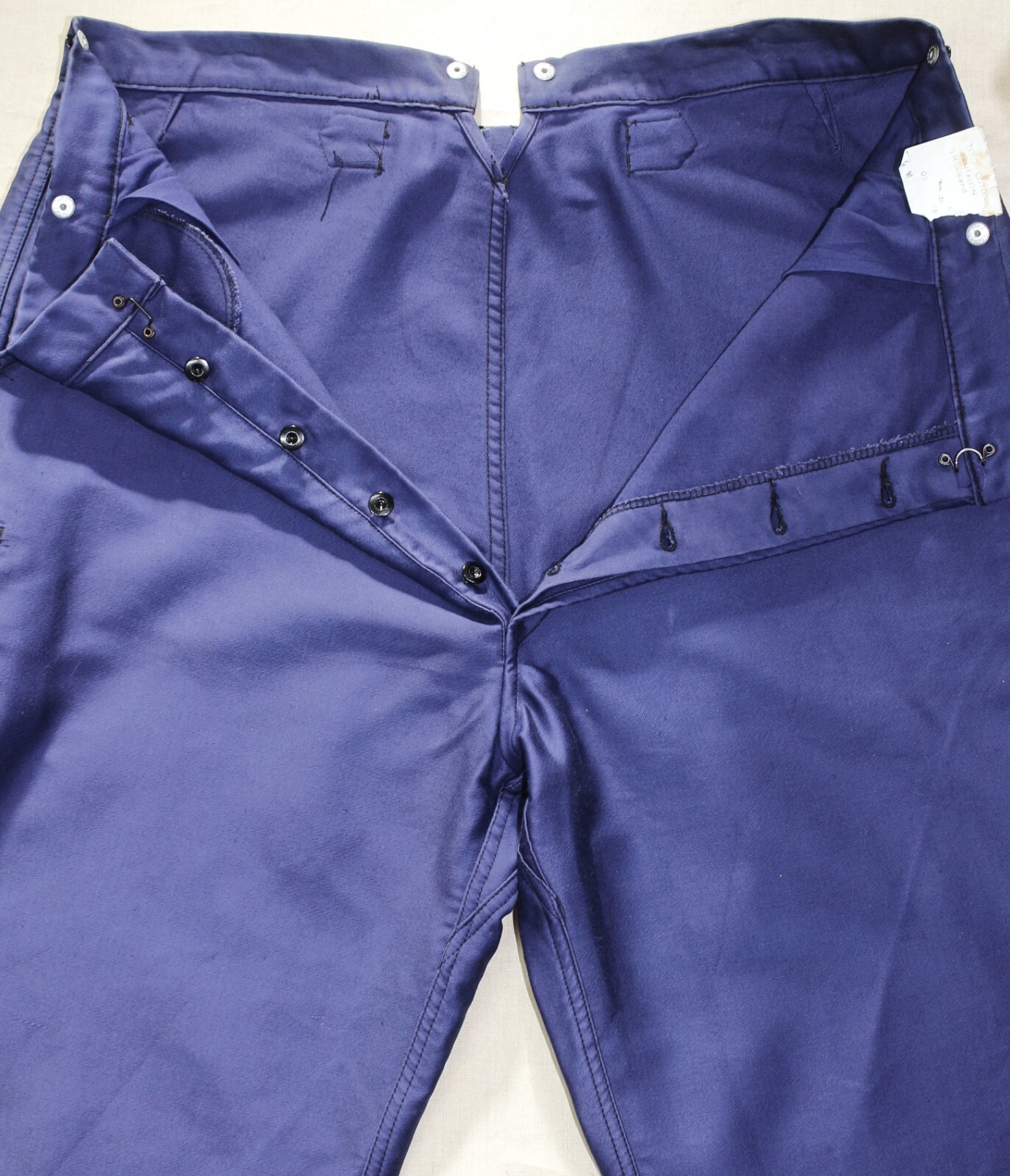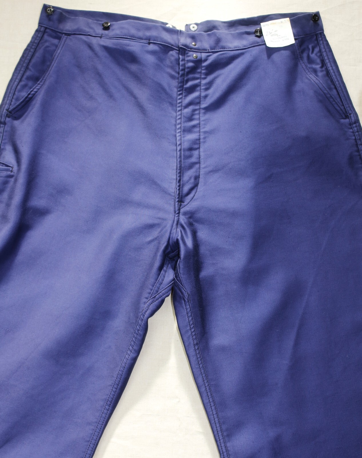 New French Vintage 50s Blue Moleskin Buckle Back Work Pants ADOLPHE LAFONT W42