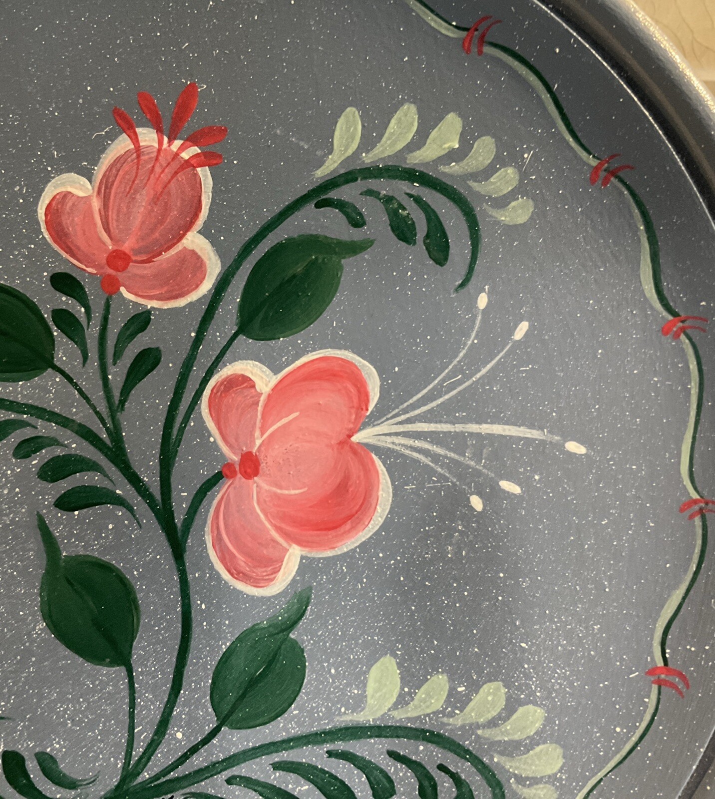 • Hand Painted Folk Art Scandinavian Rosemaling Wood PLATE floral, signed