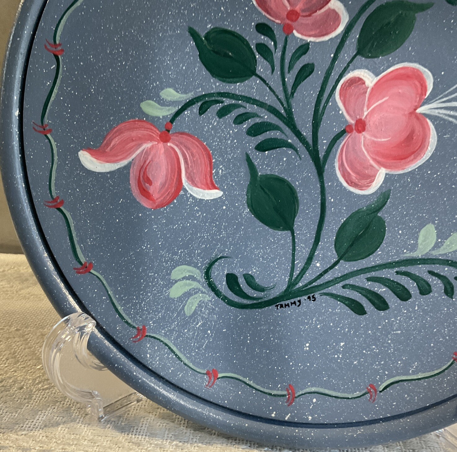 Hand Painted Folk Art Scandinavian Rosemaling Wood PLATE floral, signed
