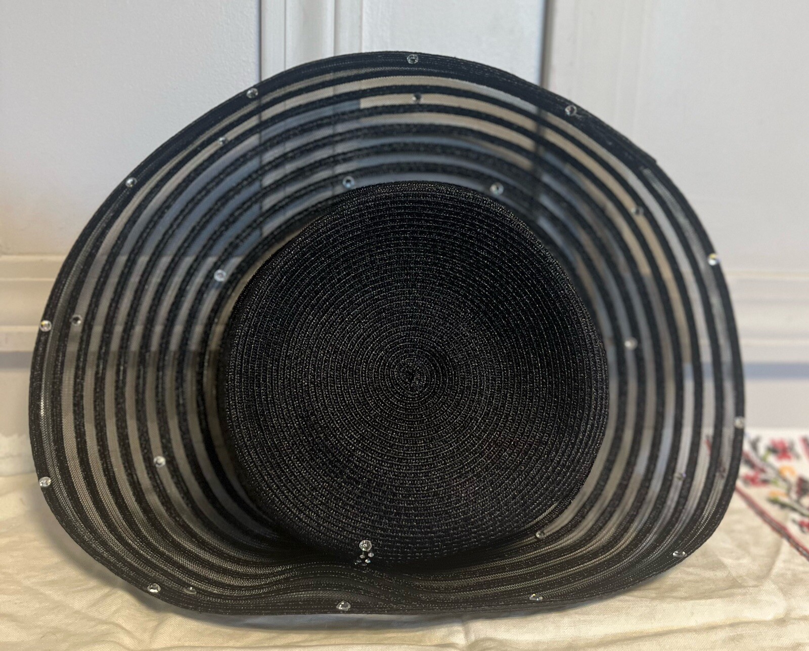 как выглядит Vintage Church Hat New Hattattide By Pamela Black Rhinestone Custom Made фото