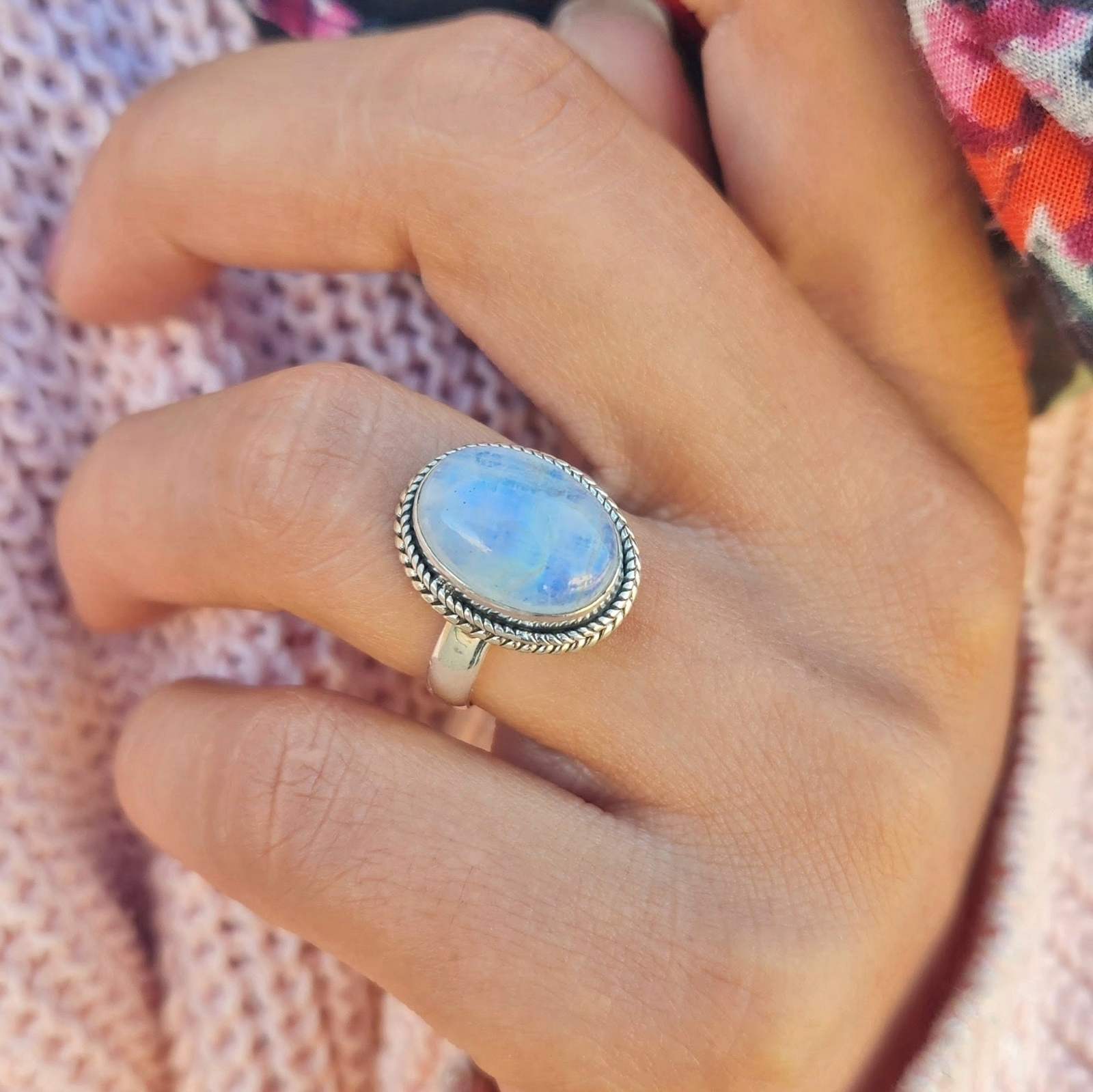 Genuine Moonstone Ring 925 Sterling Silver Statement Ring Ships From USA
