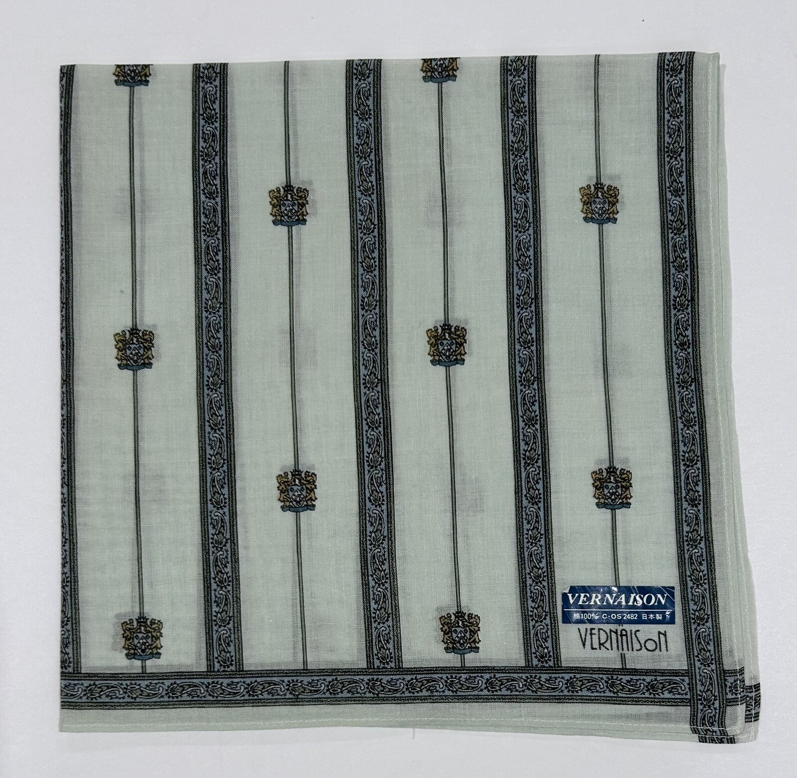 MAN HANDKERCHIEF VINTAGE Green Striped Paisley VernaisonCOTTON POCKET SQUARE 16