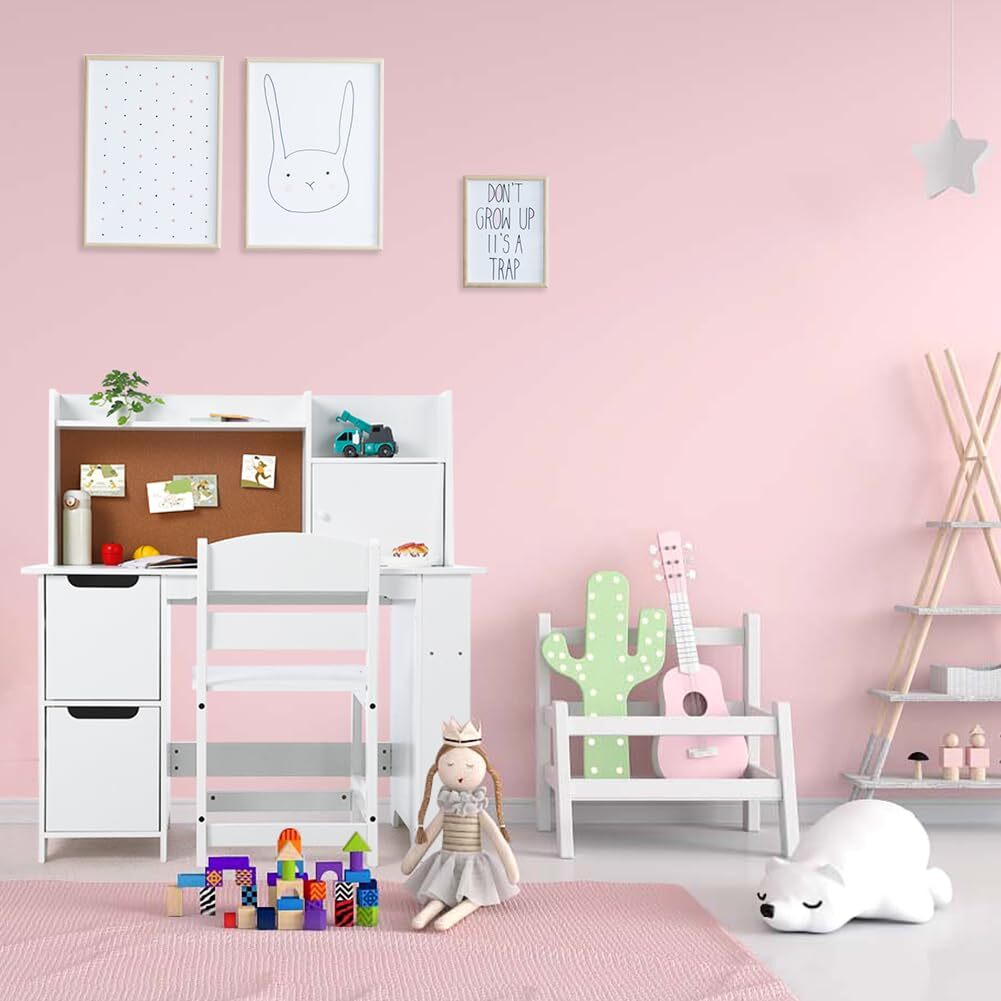 Kids Desk and Chair Set,Children Writing Table Computer Table With Storage Shelf