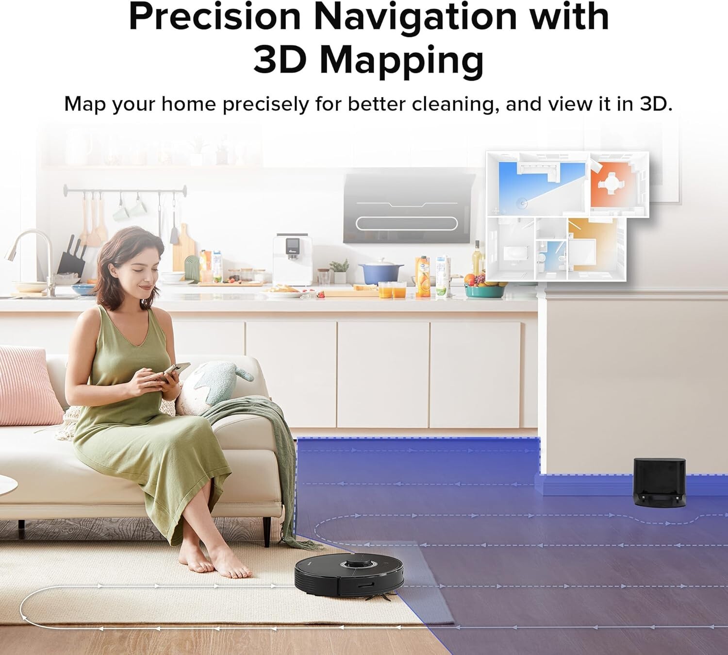 Особенности: Edge Cleaning, Multi Surface, Pet Hair Removal, Removable Brushroll, Rinsable Filter, Rotating Brushes, No-Go Zones and Invisible Walls, 4200 Pa High Power Suction, Simultaneous Vacuum and Mop, App Controlled Mopping, PreciSense LiDAR Navigation, 3D Mapping Support, Custom Cleaning Routines, Work with Alexa & Google Home