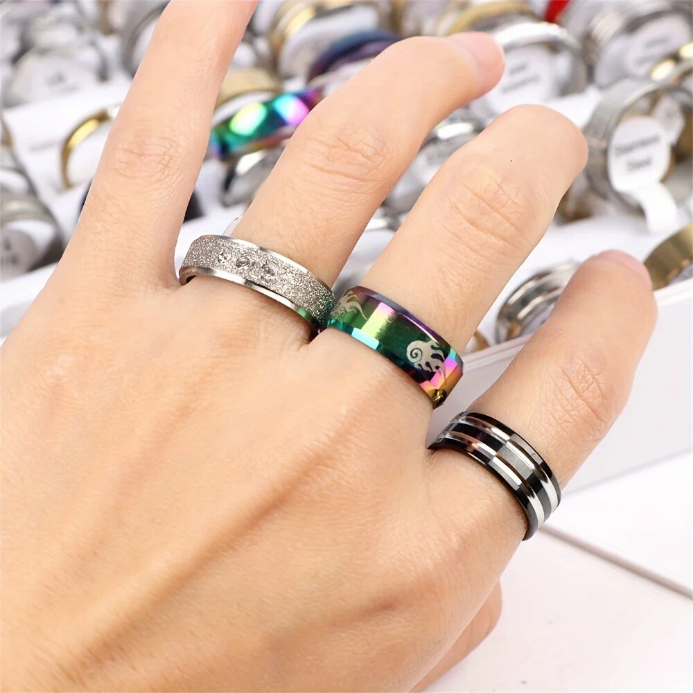 100 Pcs Mixed Finger Rings Stainless Steel Band Ring Jewelry Lot Female Wedding