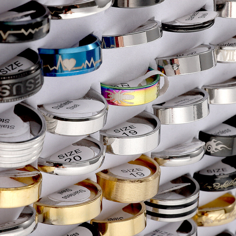 как выглядит 100 Pcs Mixed Finger Rings Stainless Steel Band Ring Jewelry Lot Female Wedding фото