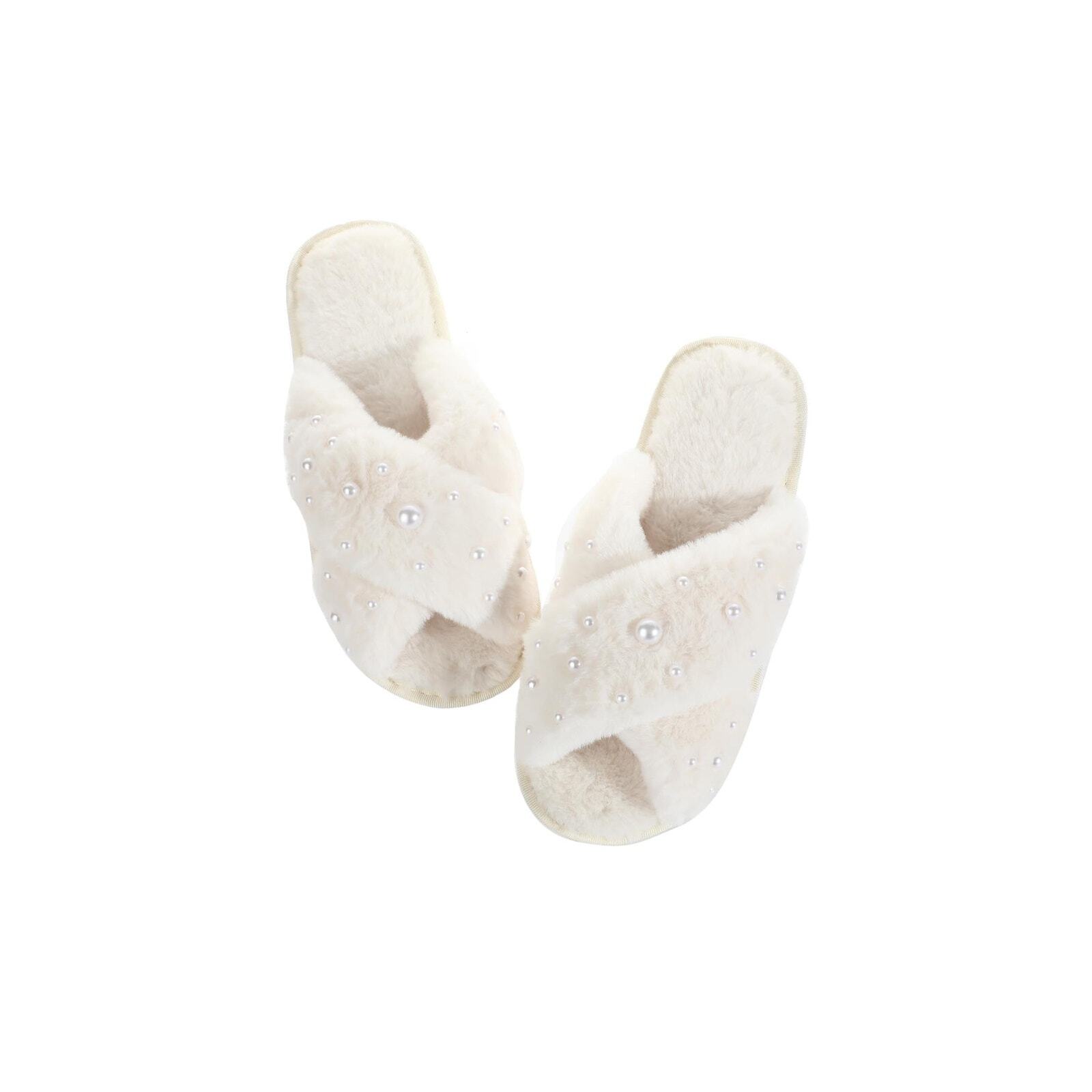 как выглядит Bridal Bridesmaid Pearl Fuzzy Slippers 8.5 фото
