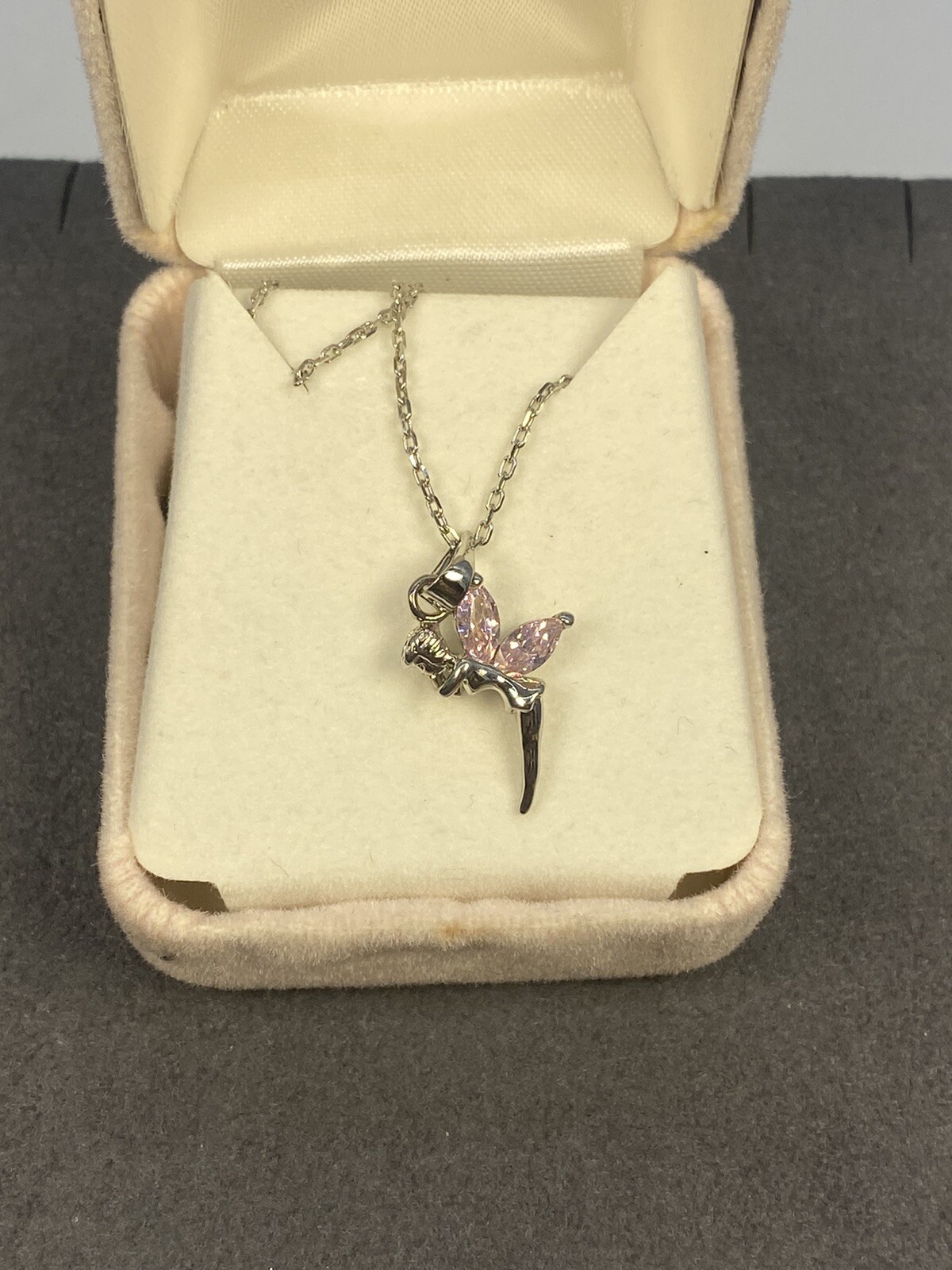 как выглядит Tinkerbell Necklace With Pink Gem Wings Sterling Silver Toned Chain фото