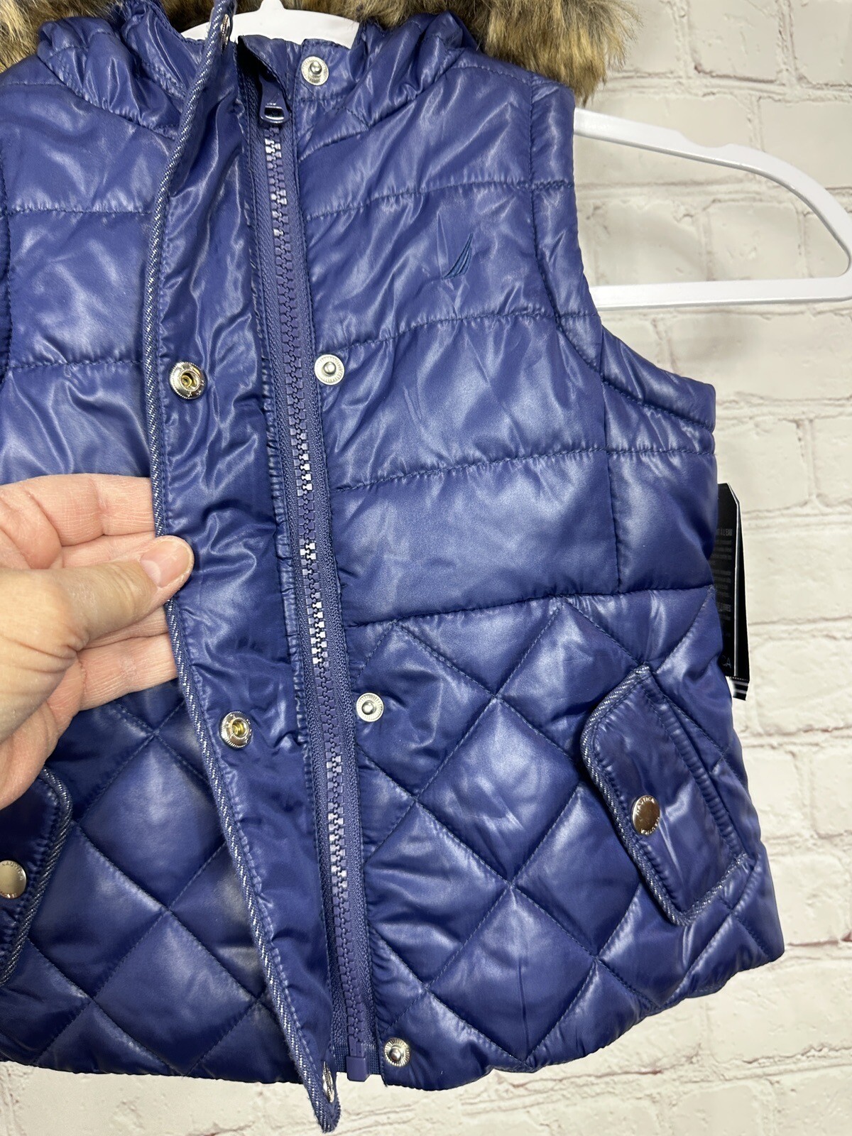 Nautica navy blue quilted hooded puffer vest, sz 2T, NWT