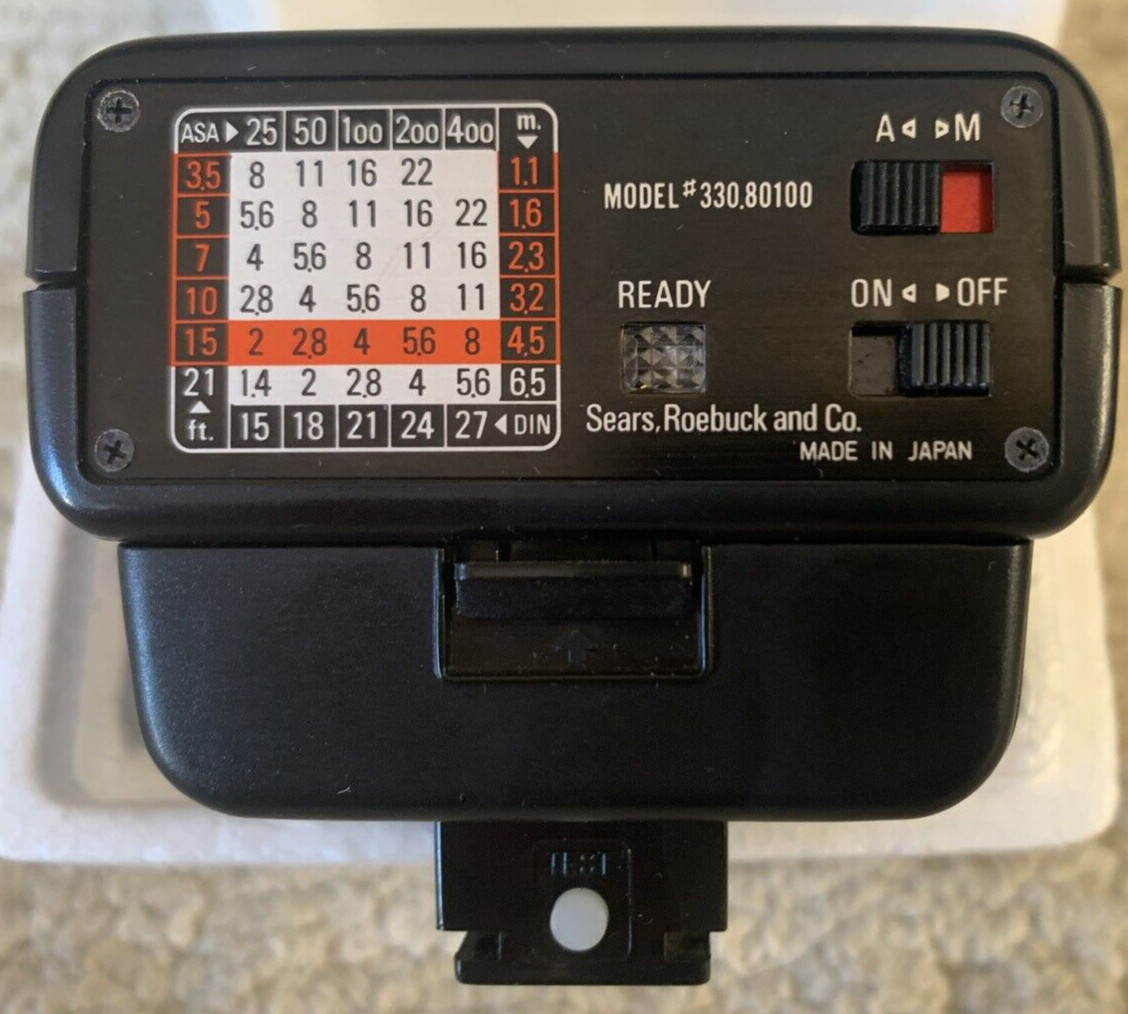 Vintage Sears Camera Flash Model 330.80100 Hot Shoe Mount in orig. box tested