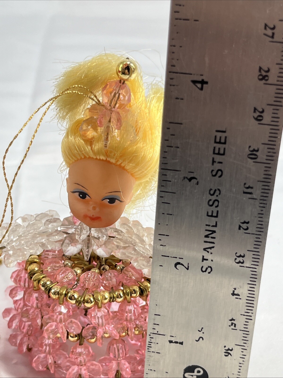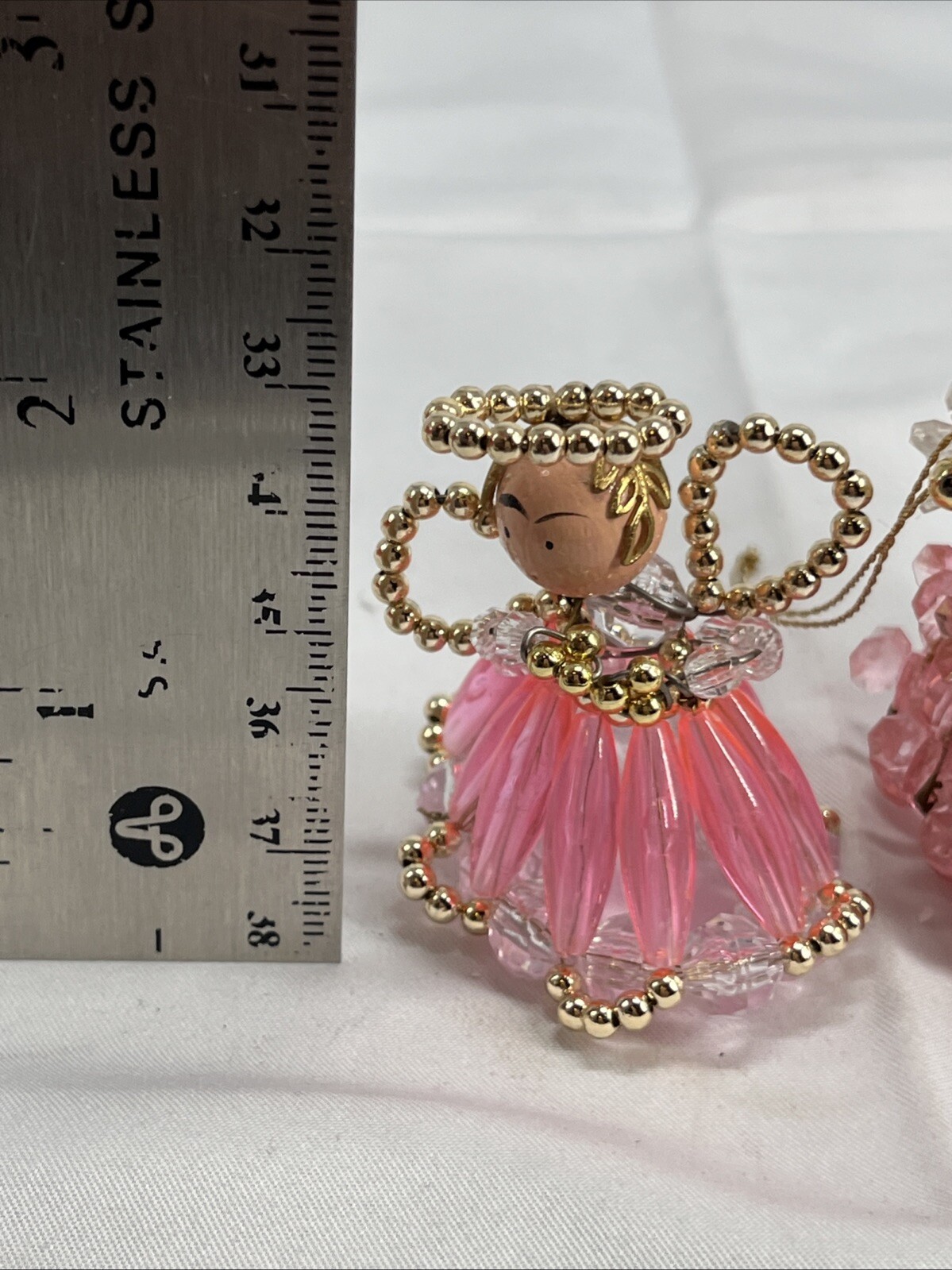 как выглядит Vintage 50s Beaded Safety Pin Craft Doll Christmas Ornaments Set 2 White Red фото