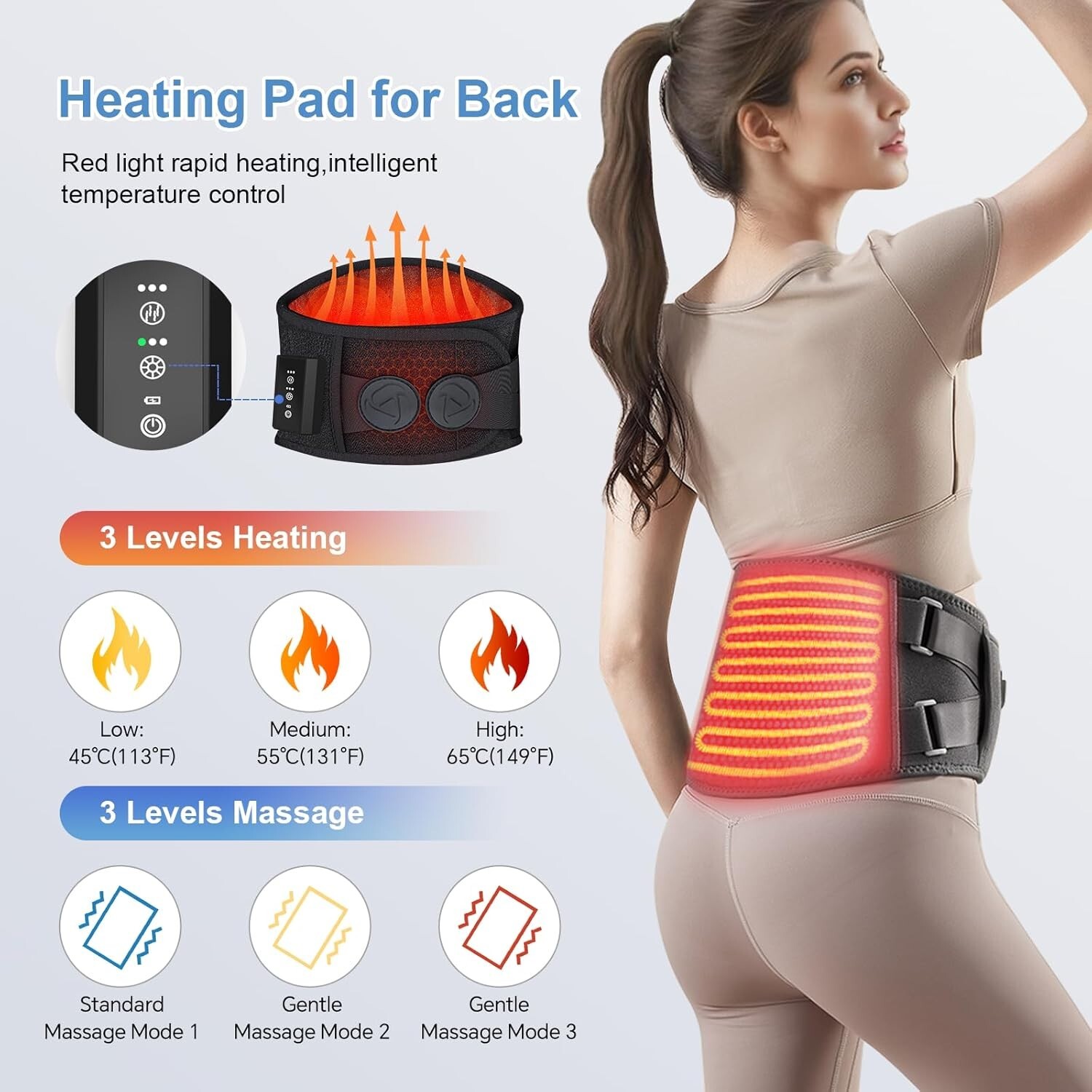 Cordless Heating Pad for Back Pain Relief,Portable Lower Back Massager with Heat