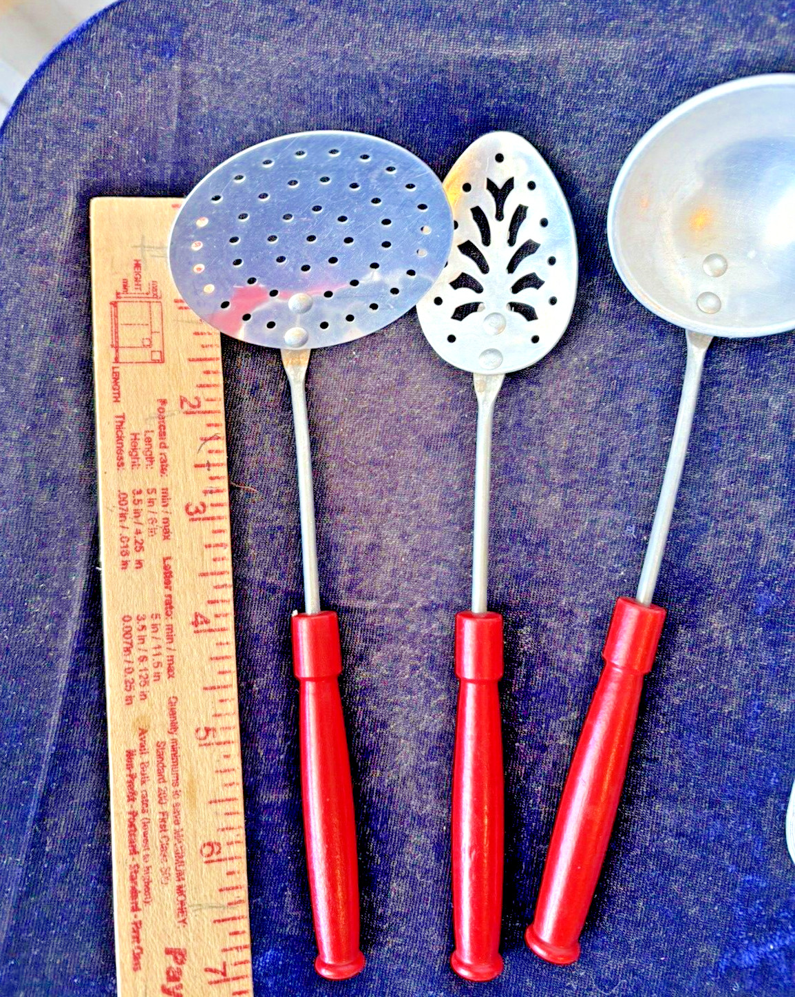 как выглядит 20 PCS VINTAGE TOY KITCHEN UTENSILS - RED WOODEN HANDLES, TIN, WOODEN, SAUCEPAN фото