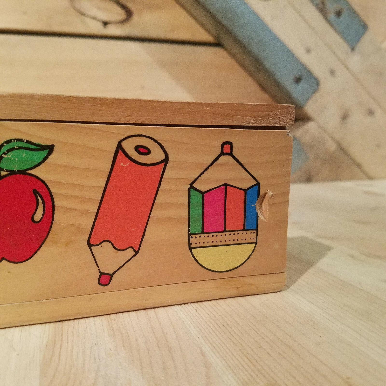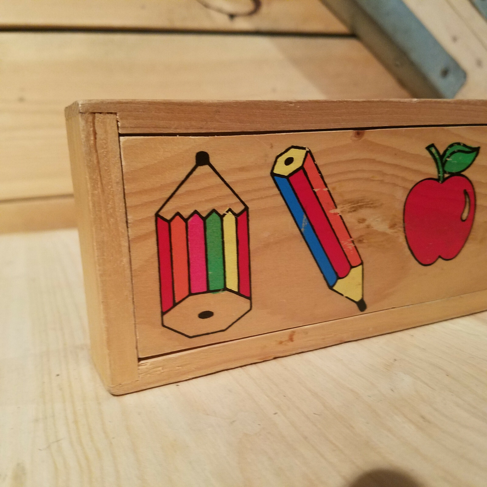 Colorful School Themed Pine Wood Pencil Case - Swanky Barn