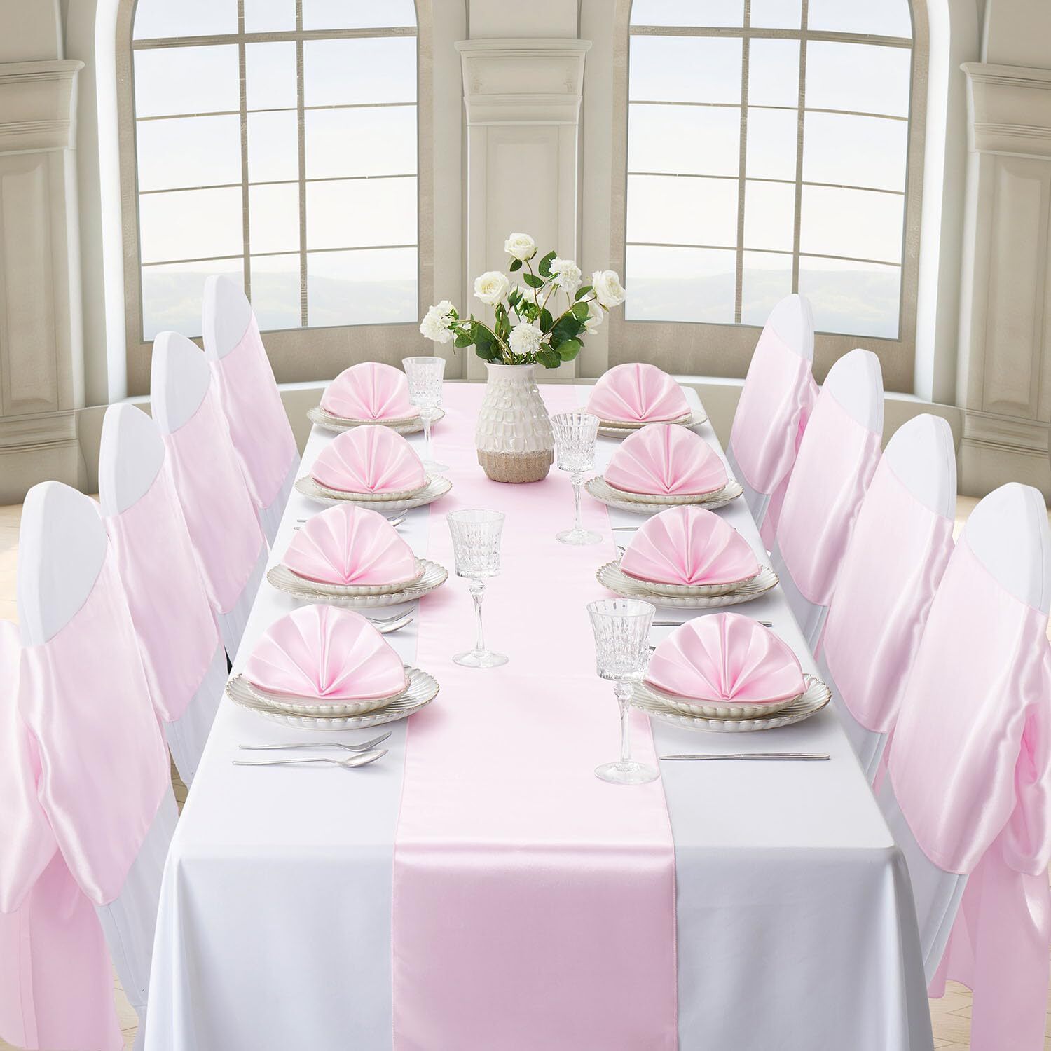 как выглядит 12 Pack Light Pink Satin Table Runner 12x108 Inches Long Satin Silk-Smooth Ta... фото