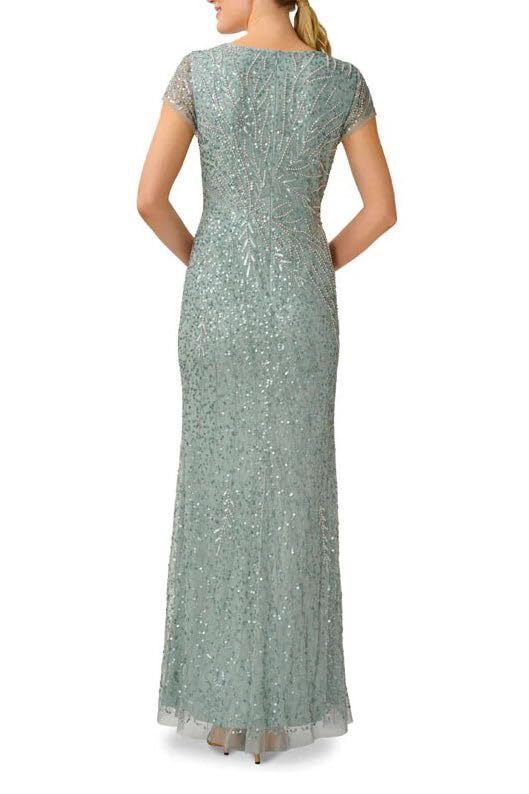 как выглядит Adrianna Papell Womens Beaded Mermaid Gown, Sterling фото