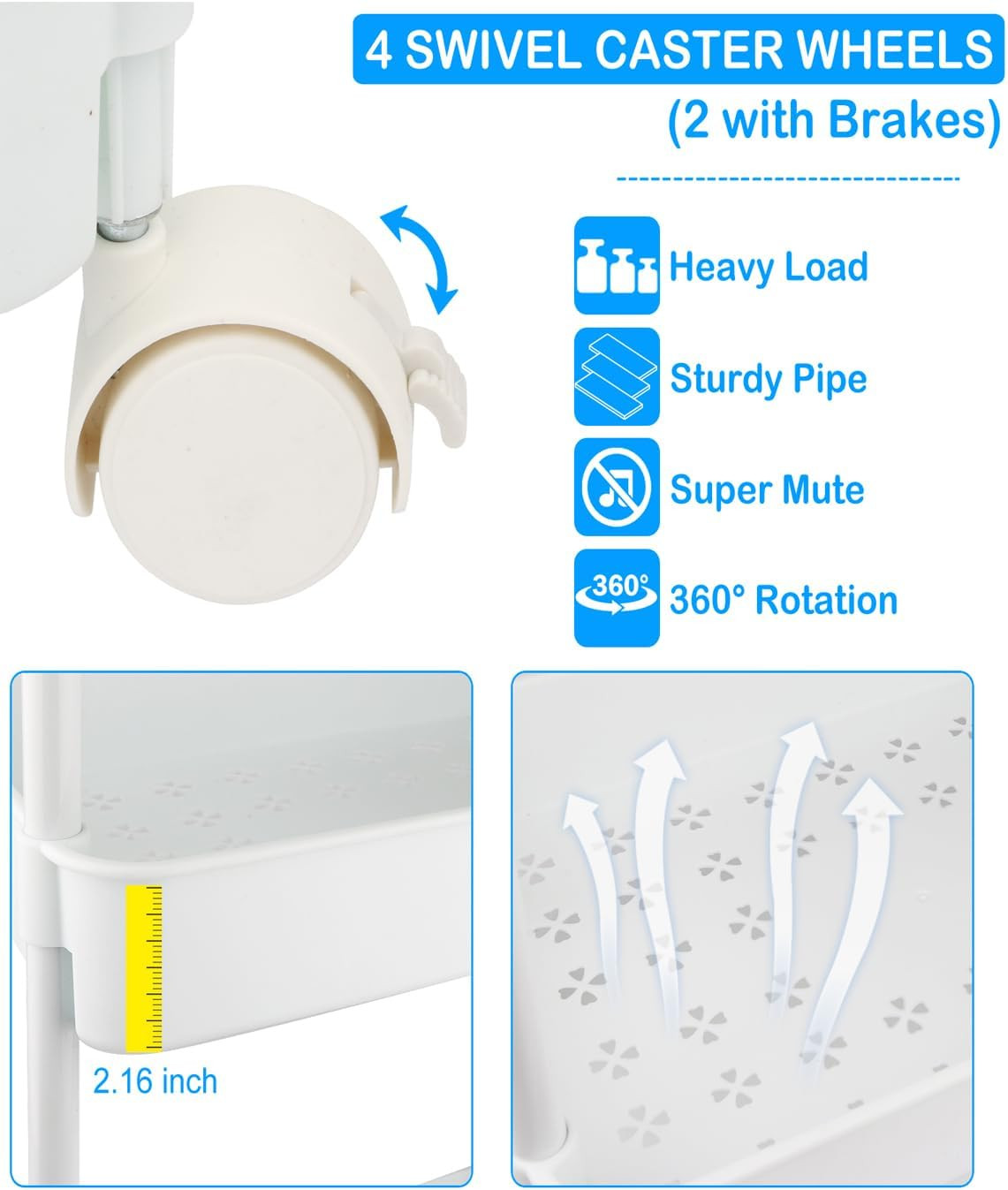 Diaper Caddy Organizer, 3-Tier Movable Diaper Cart with Wheels, Newborn Essentia