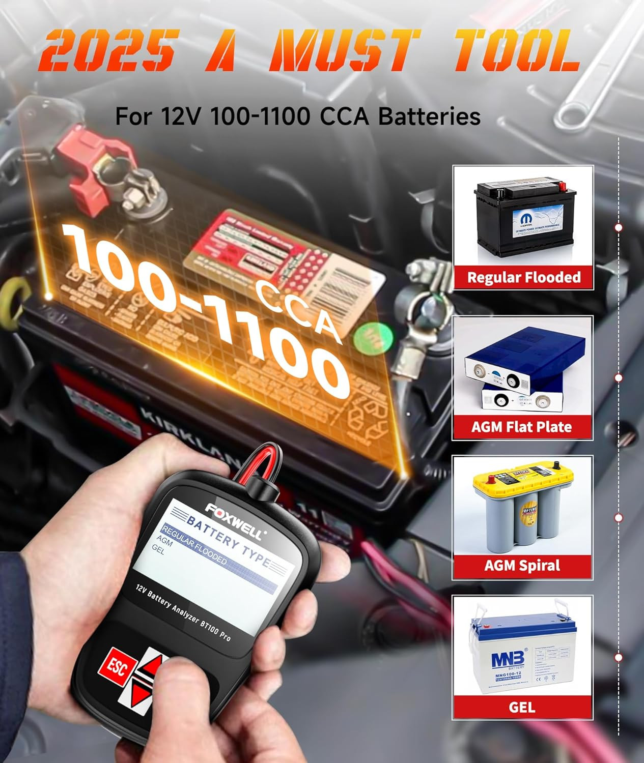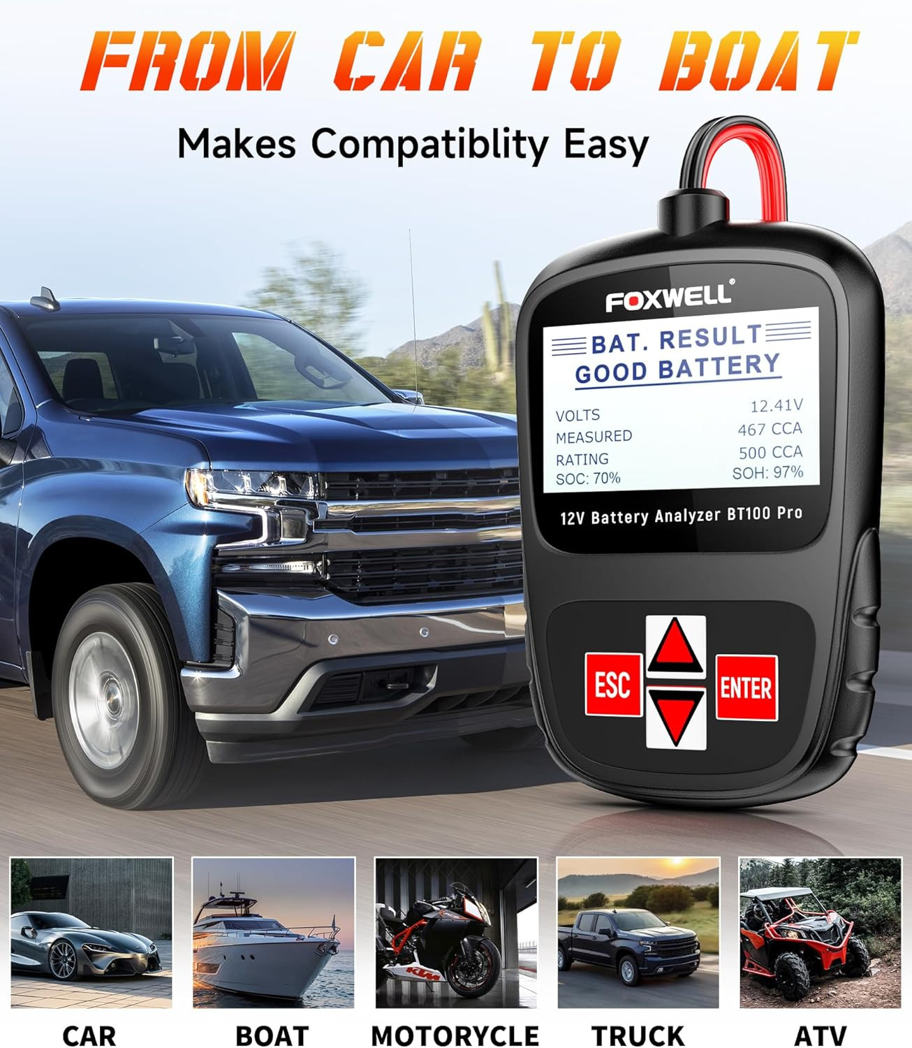 BT100 Pro 12V Car Battery Tester - Digital Load Analyzer for Auto Marine