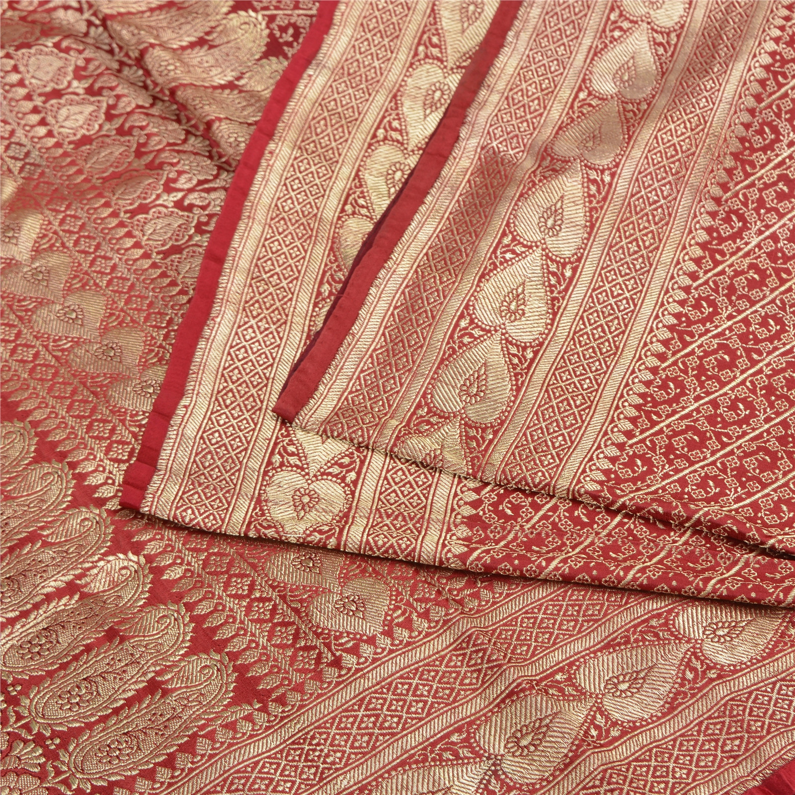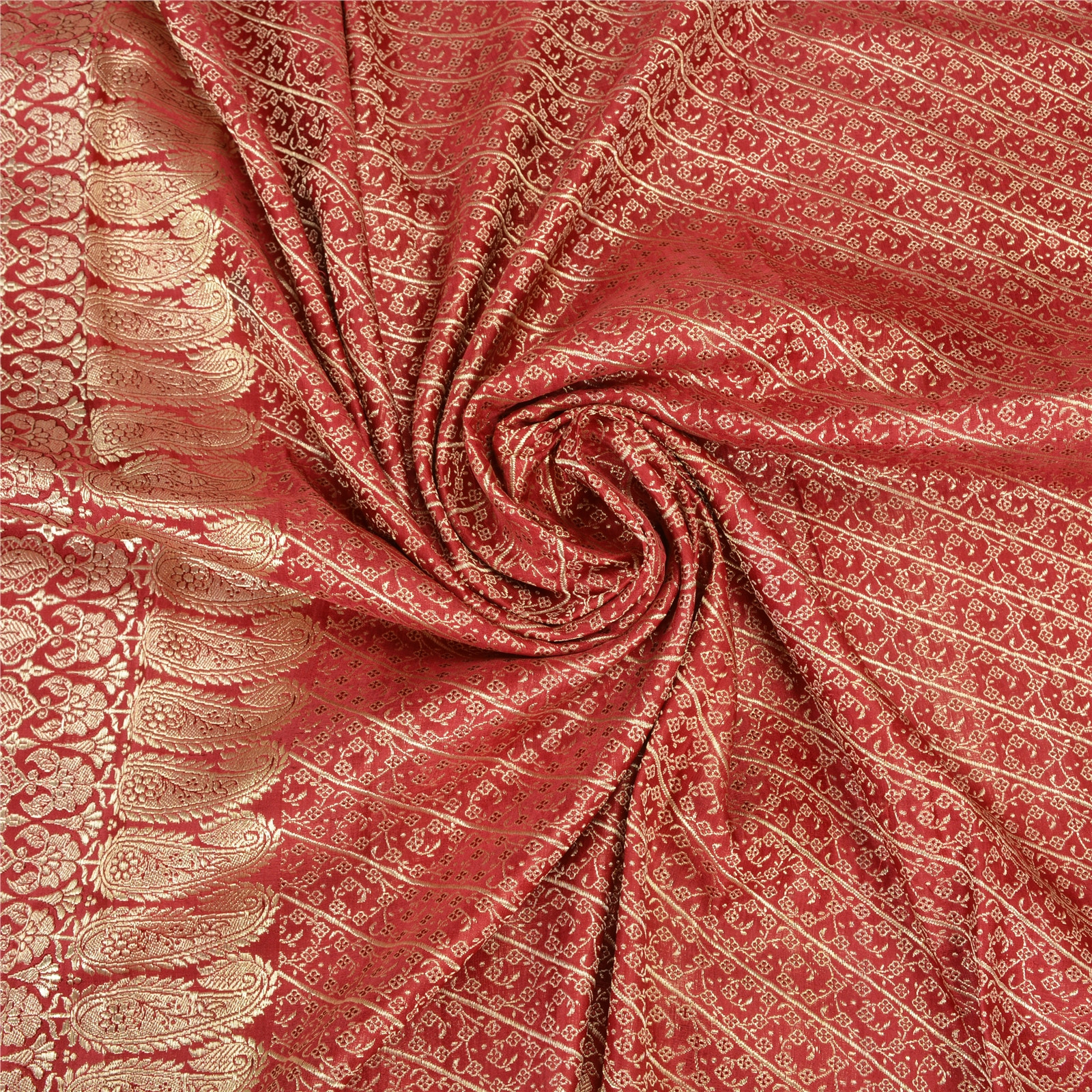 Sanskriti Vintage Dark Red Sarees Pure Satin Silk Banarasi/Brocade Sari Fabric