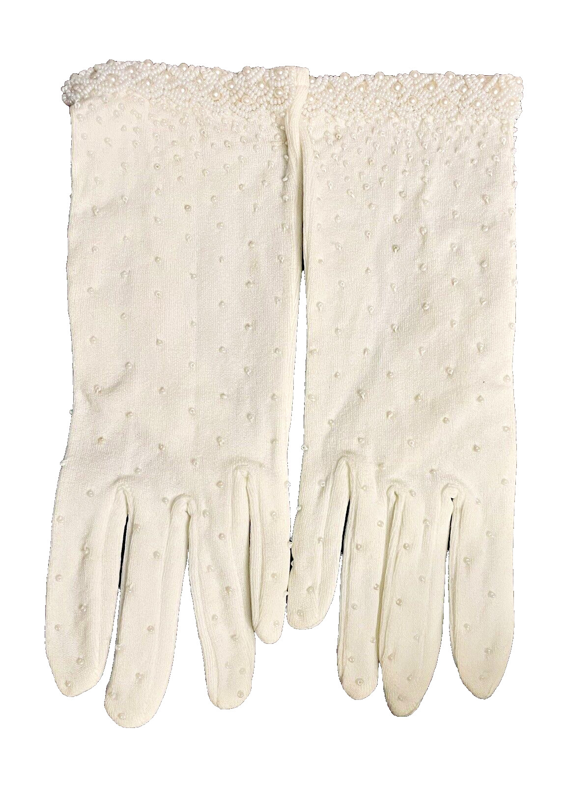 VTG 60 s Ivory Beautiful Beaded Gloves Made In Hong Kong One SZ NEW in PKG