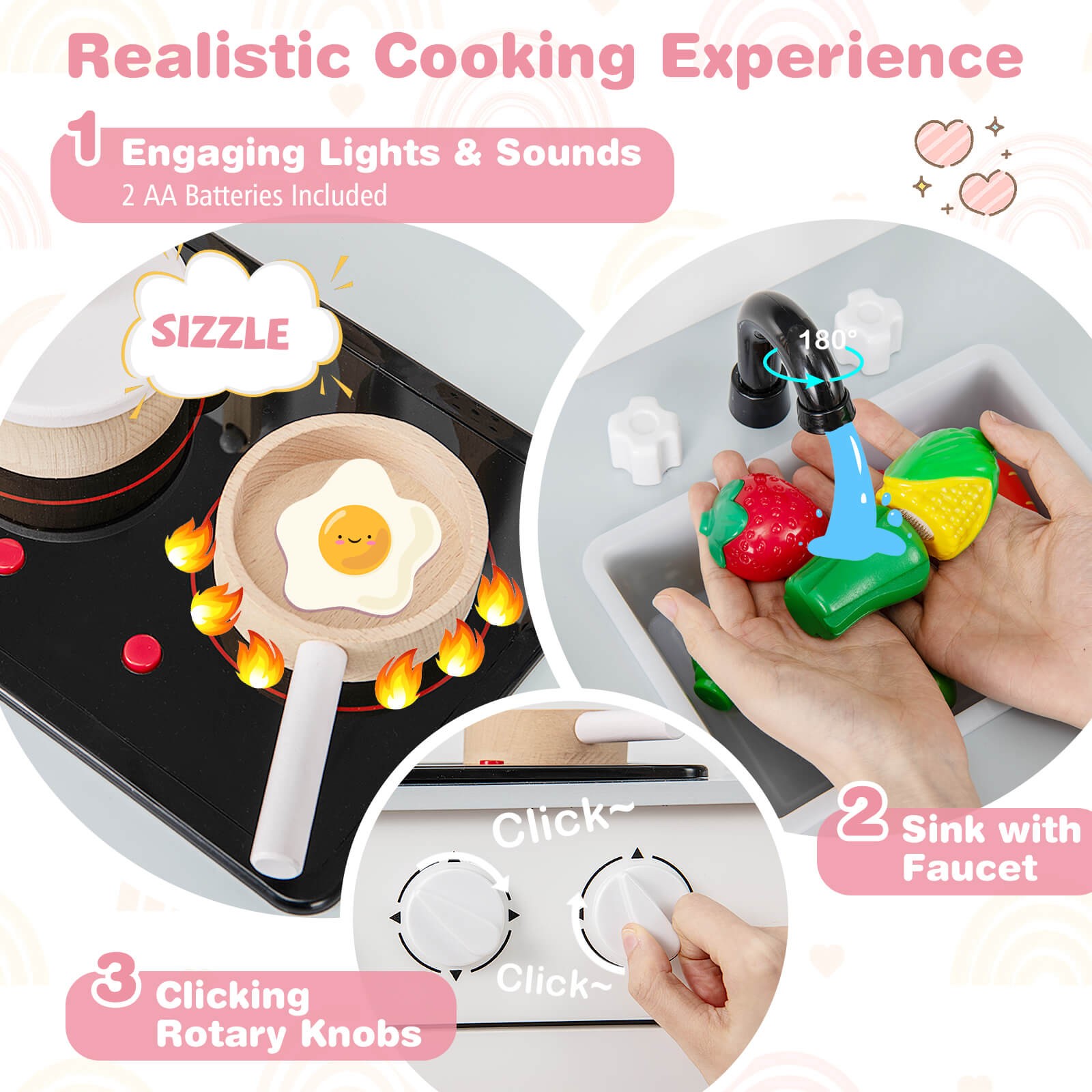 Kids Kitchen Playset w/ Light up Stove Cooking Sounds Oven Sink Faucet