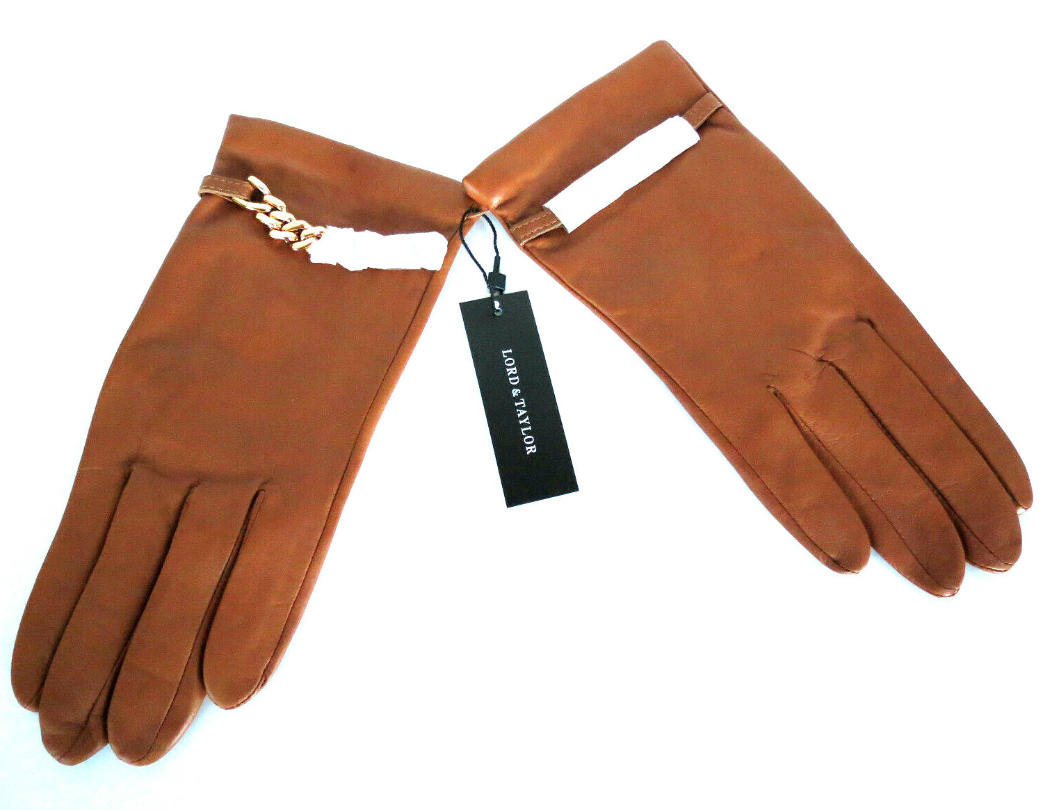 NEW - Vintage Lord Taylor Women's Genuine Leather Gloves with Chain Detail