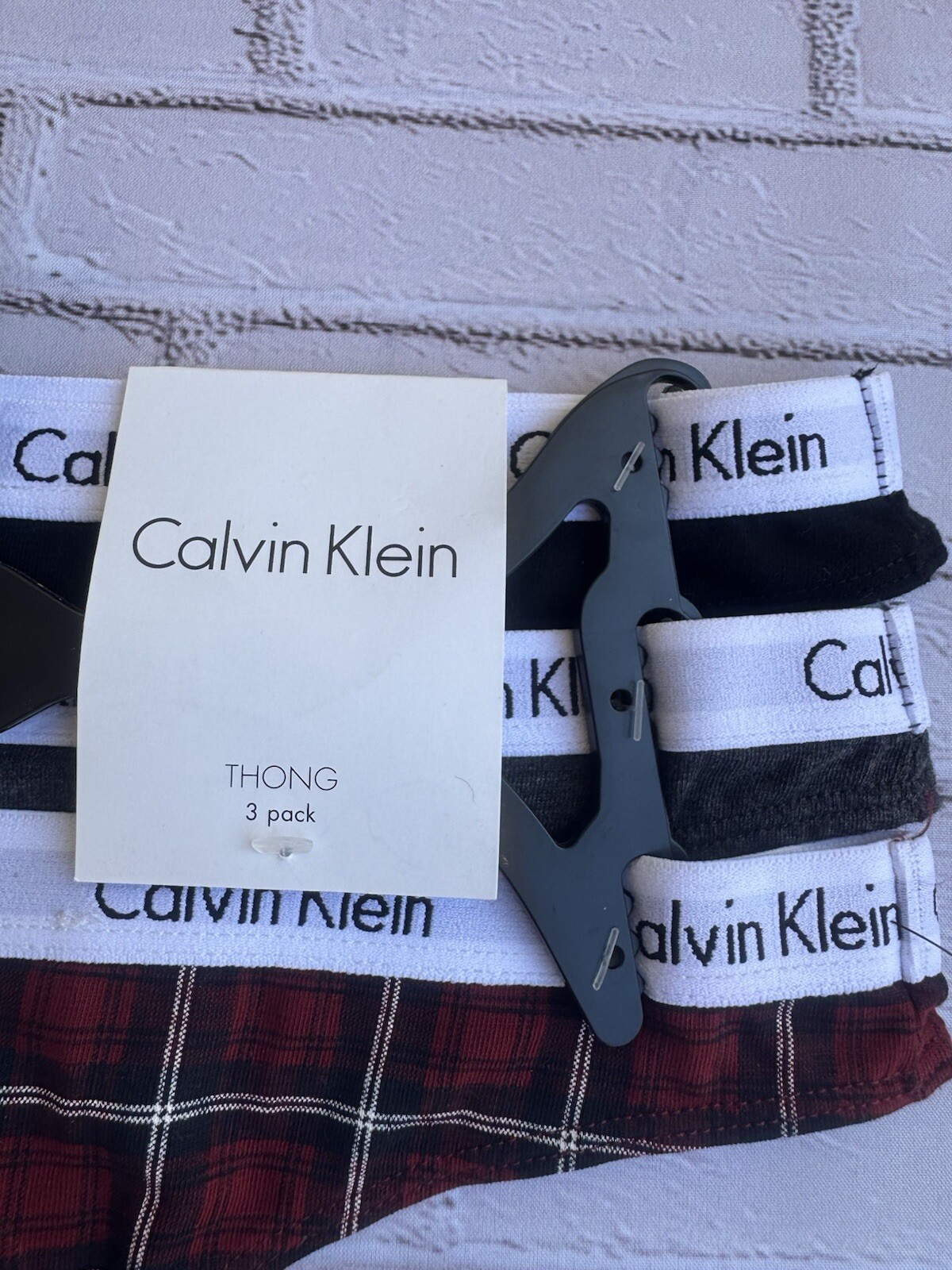 как выглядит Calvin Klein Womens Carousel Logo Cotton Thong Panty 3 -Pack, Multicolor, M фото