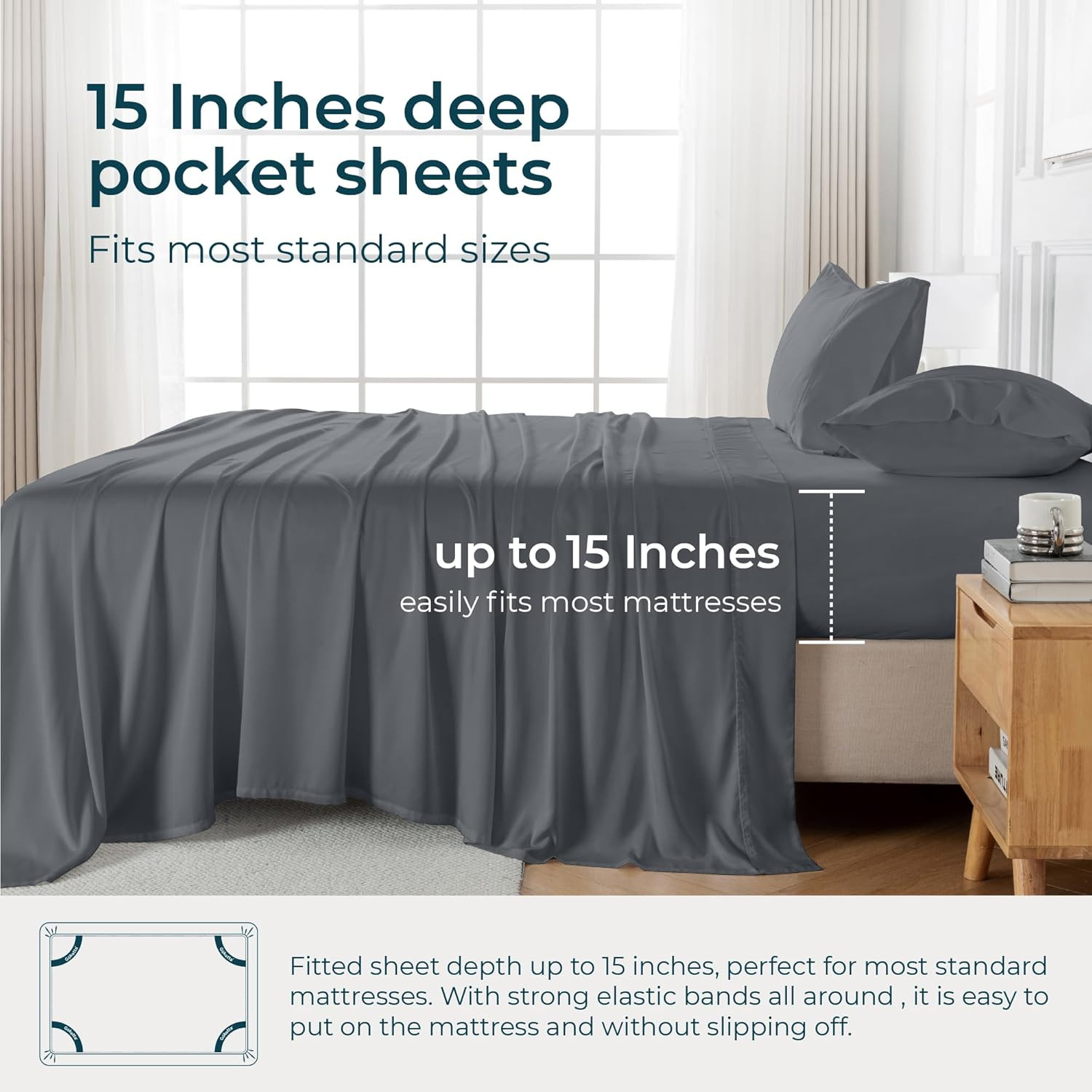 Special Feature: Cooling, Fully Elasticized, Hypoallergenic, Soft, Moisture Wickin