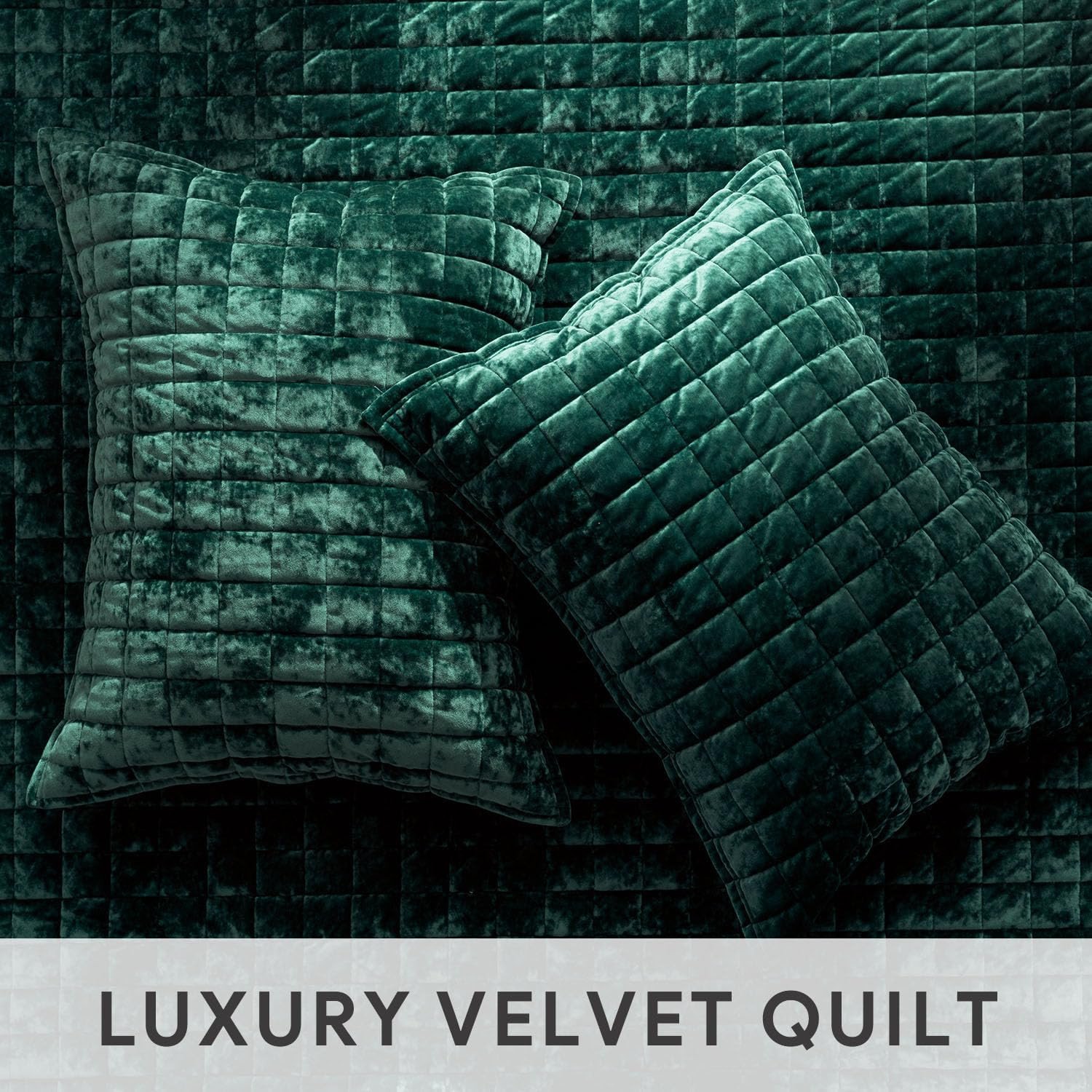 Emerald Green Velvet Quilt Set, Ultra Soft Queen Comforter with Pillow Shams