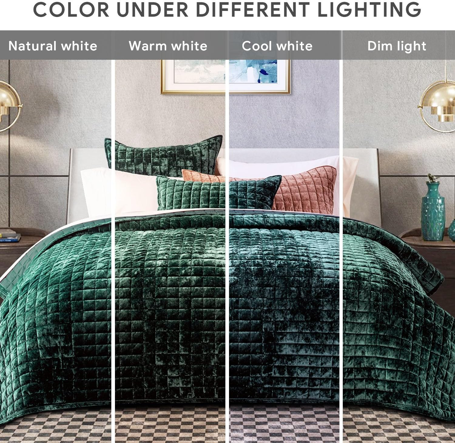 как выглядит Emerald Green Velvet Quilt Set, Ultra Soft Queen Comforter with Pillow Shams фото