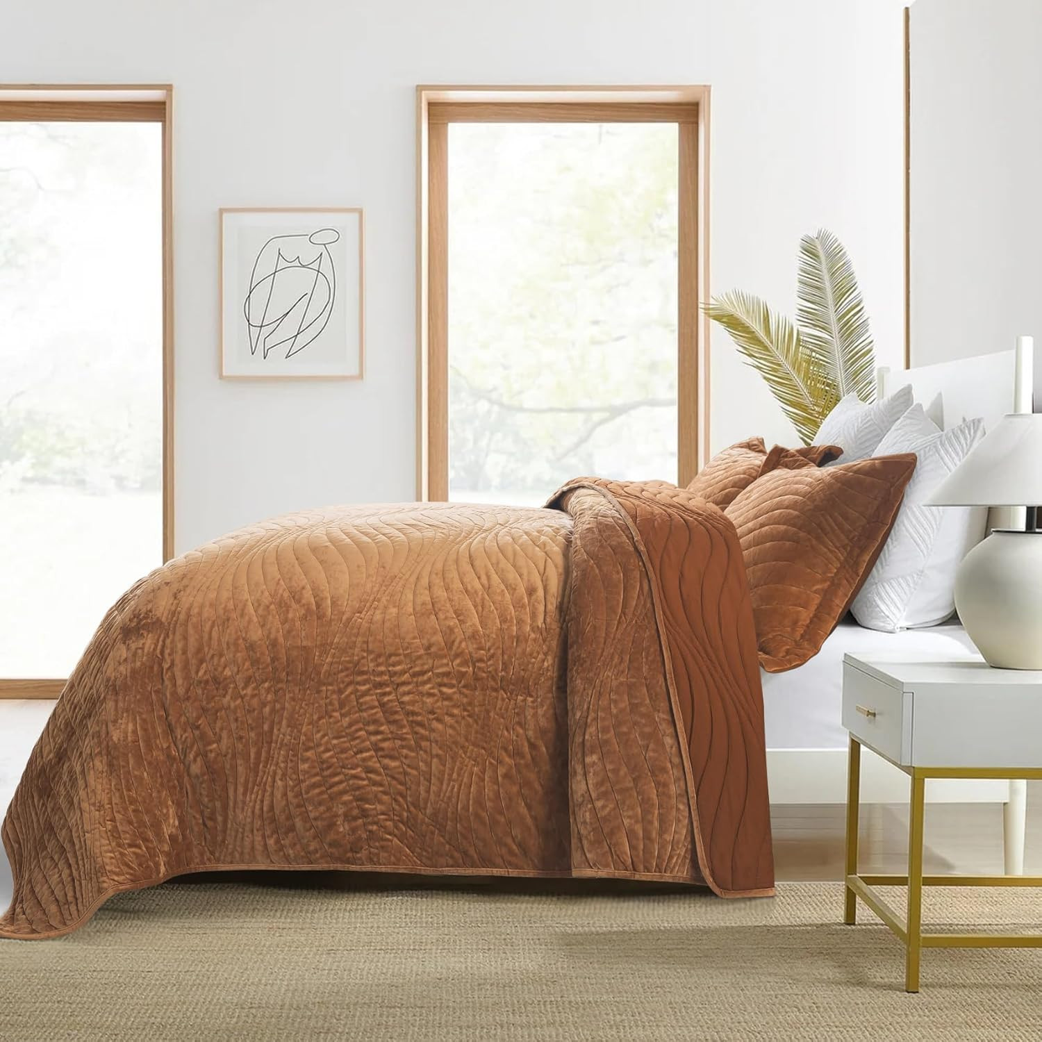 Luxury Velvet Quilt Set Queen Size, Lightweight Velvet Comforter Set, Soft Warm