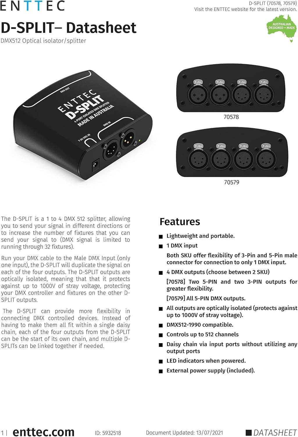 D-Split 70579 DMX 4 Port Isolated Splitter / Isolator 5-Pin