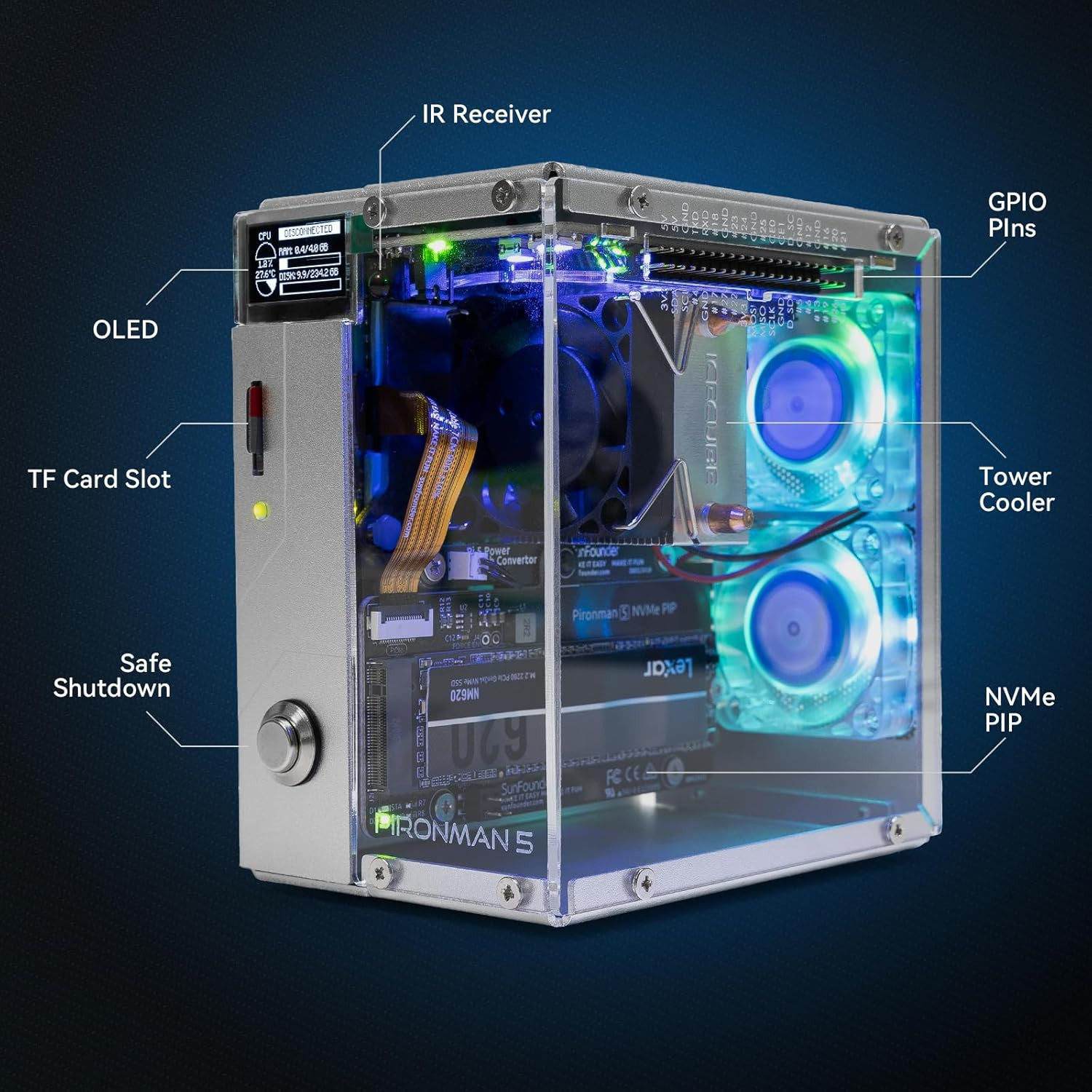 как выглядит Pironman Mini PC Case for Raspberry Pi 5 with 5 NVMe SSD and 27W PD Power Supply фото