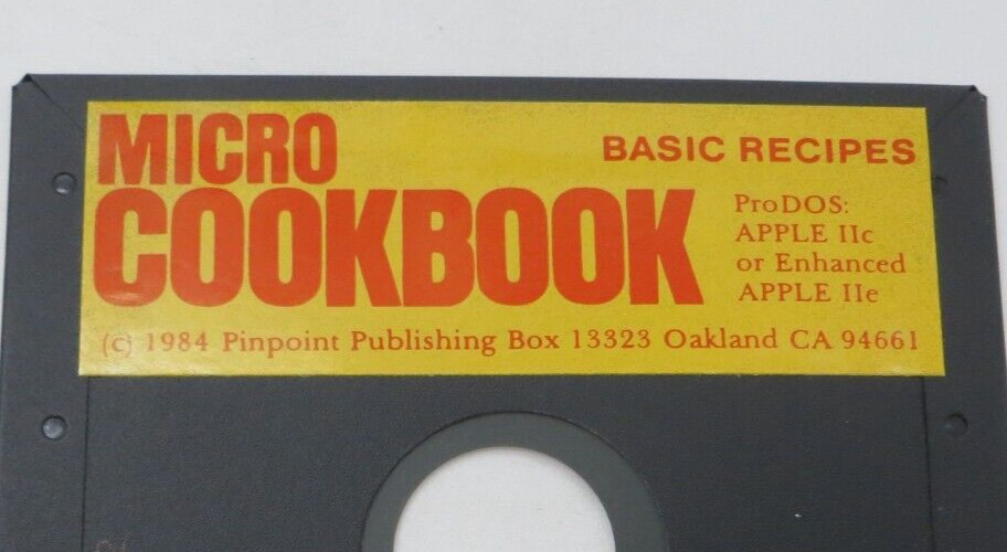 1984 Apple IIc or Enhanced IIe 5.25 Floppy Disk MICRO COOKBOOK with manual vtg