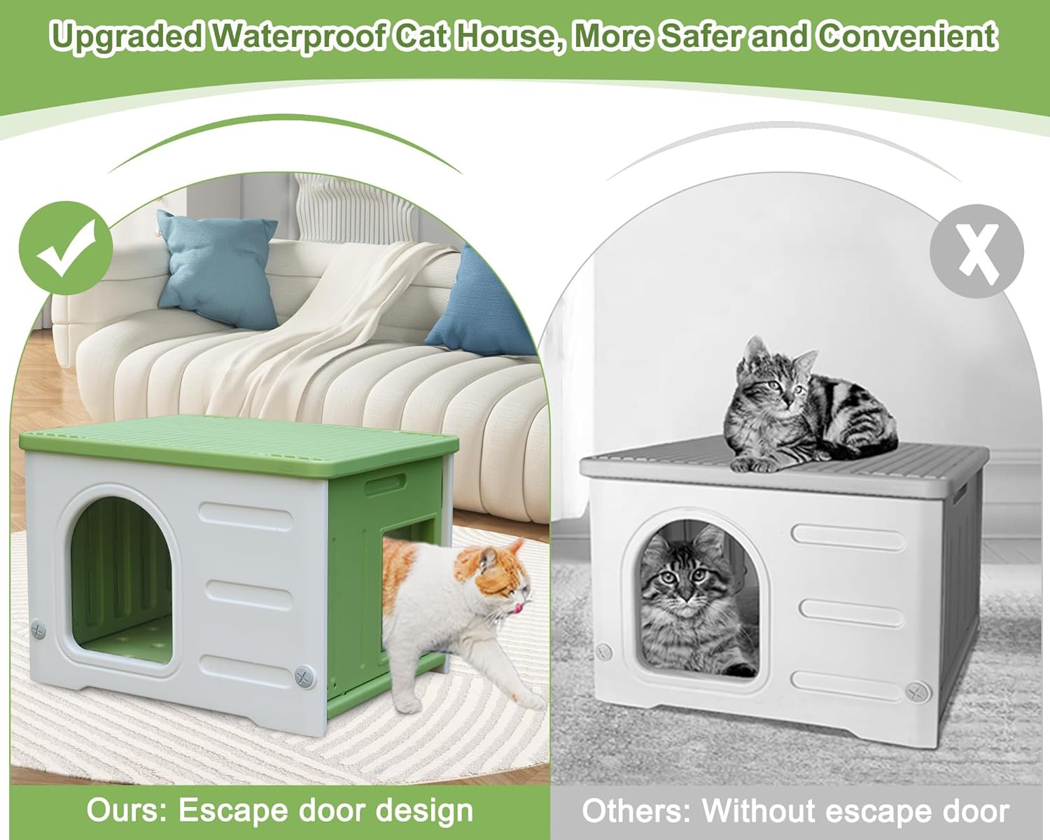 Plastic Cat House Outdoor Indoor, Waterproof Feral Cat Houses with Escape Door