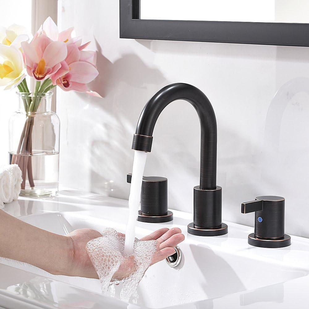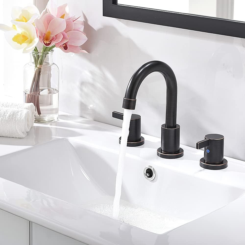 Elegant Oil Rubbed Bronze 8 Widespread Bathroom Faucet with Drain Valves