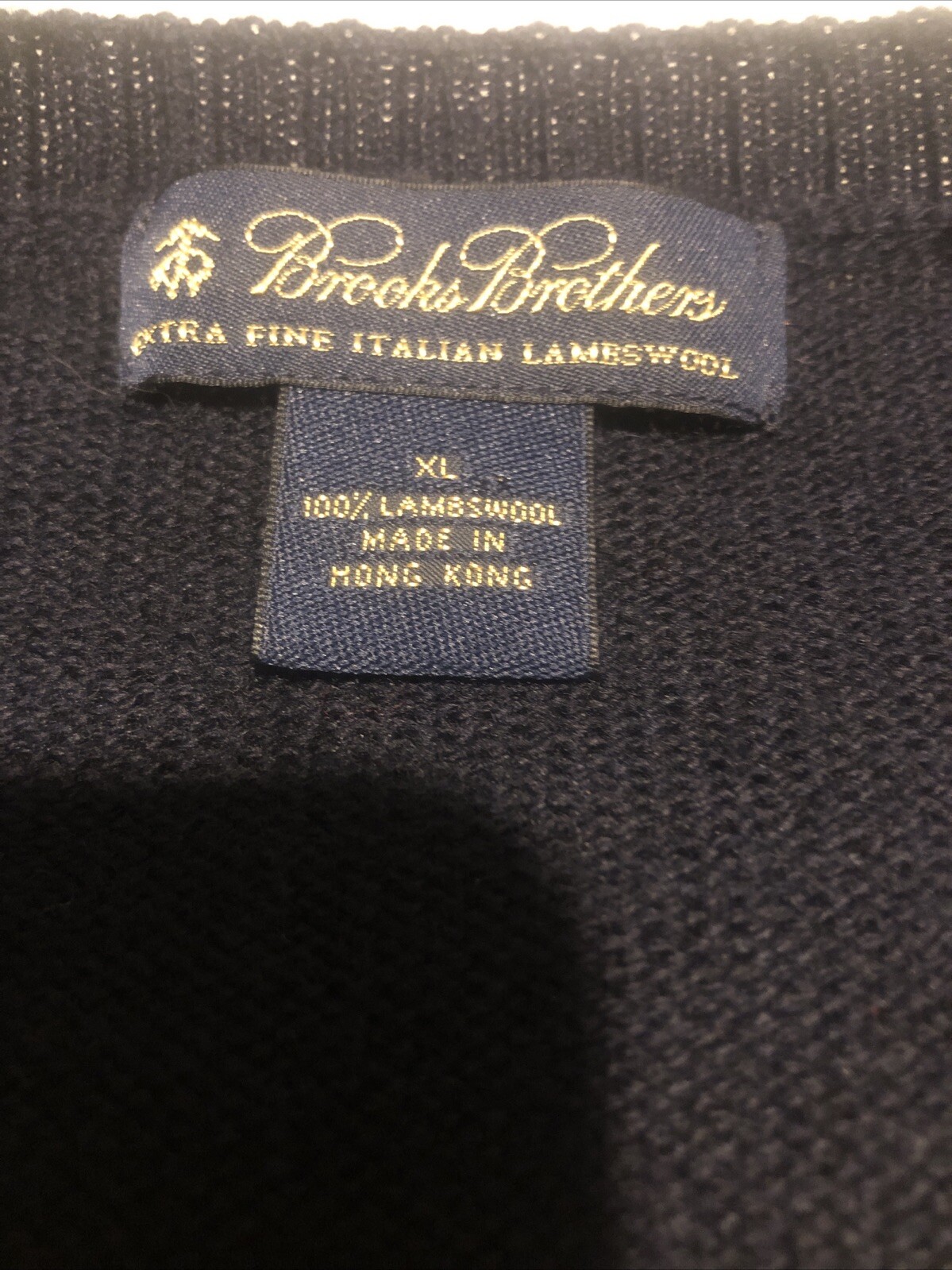 как выглядит Vintage Brooks Brothers 100 Italian Lambswool V Neck Sweater Navy Blue XL фото