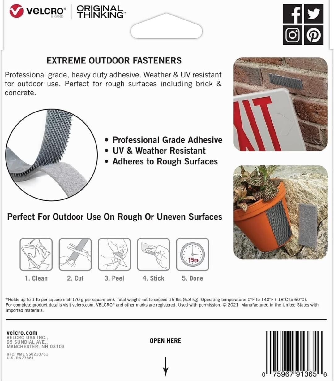 VELCRO Brand Extreme Outdoor Heavy Duty Tape 10Ft x 1 In Holds 15 lbs