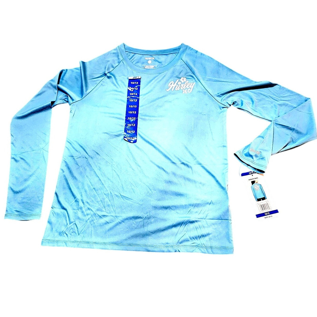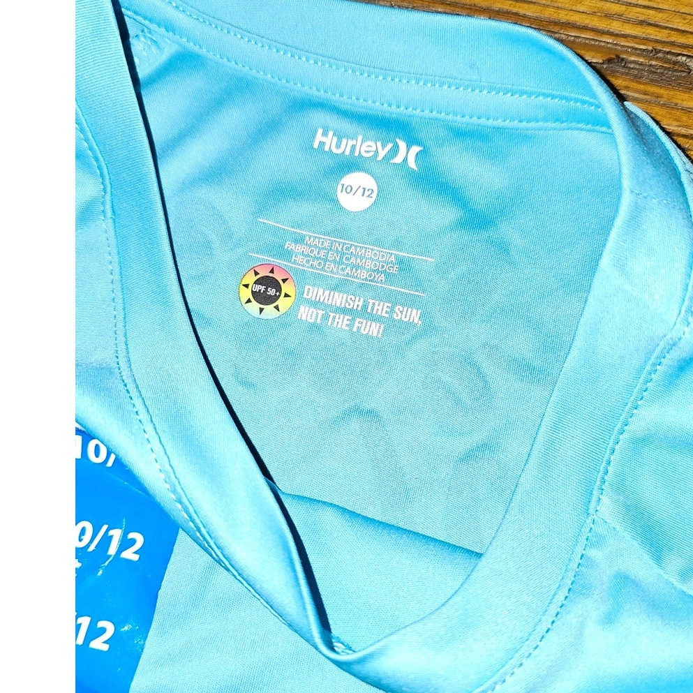 как выглядит Hurley Youth Girls Long Sleeve UPF 50 Rashguard Moisture Wicking Swim Top фото