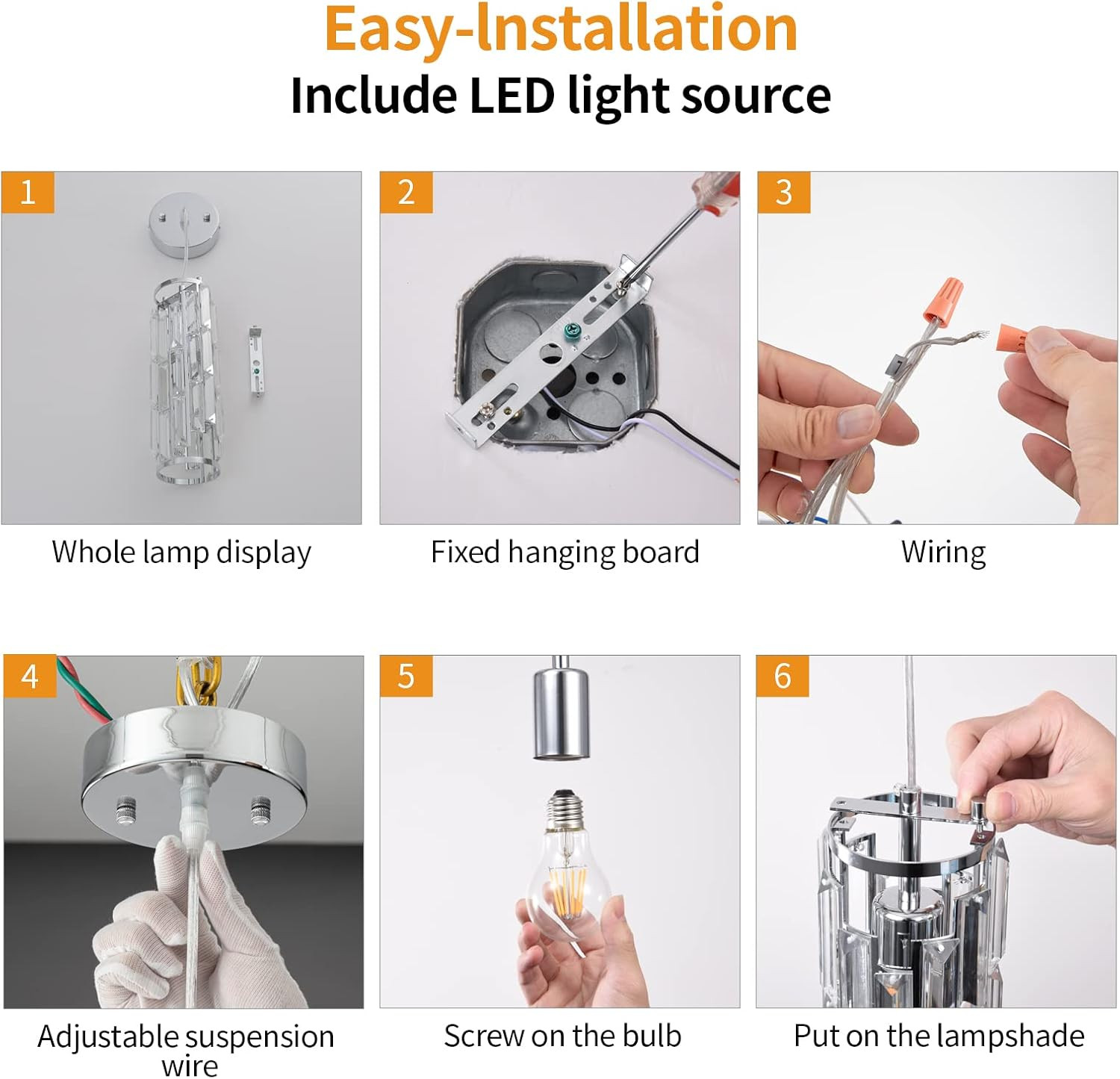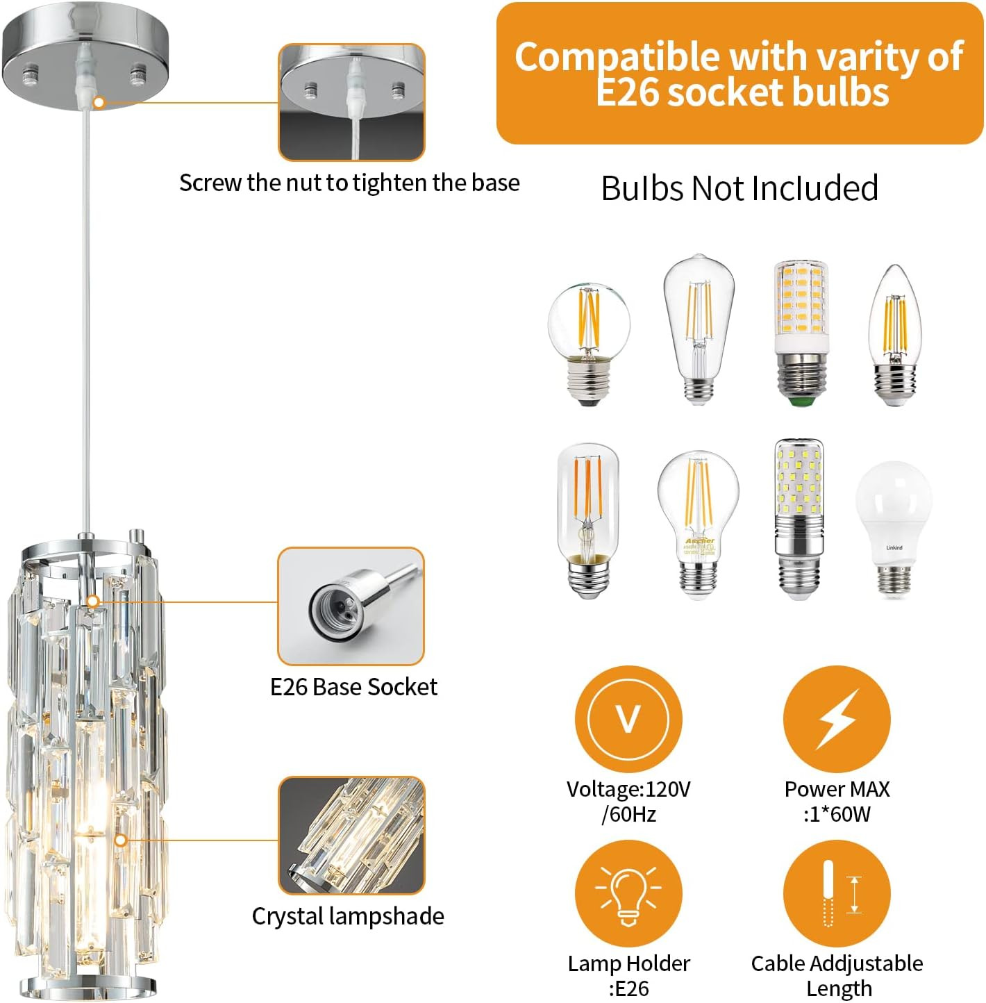 Modern Chrome Crystal Pendant Light for Kitchen Island Bedroom