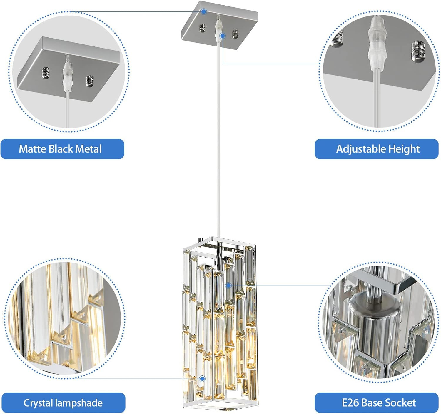 Modern Chrome Mini Crystal Pendant Light for Kitchen, Dining, Bedroom