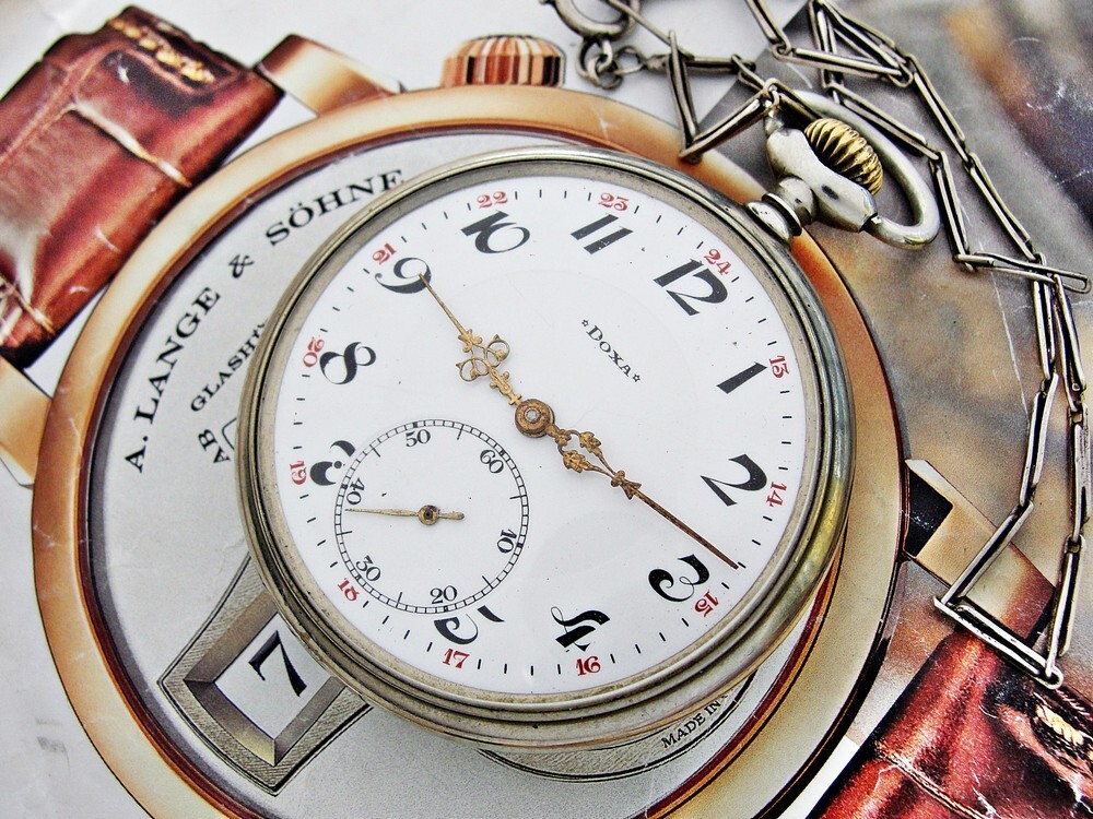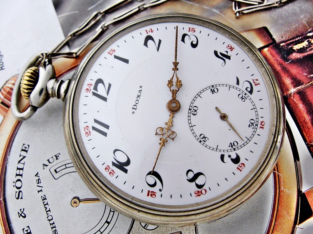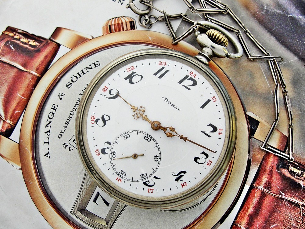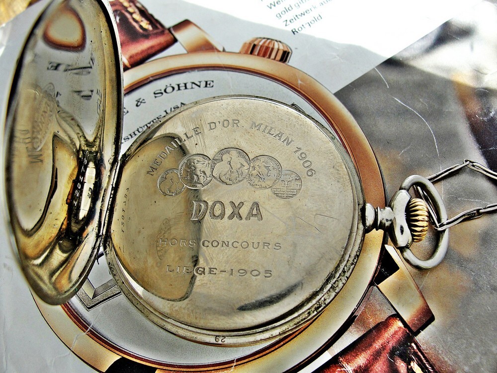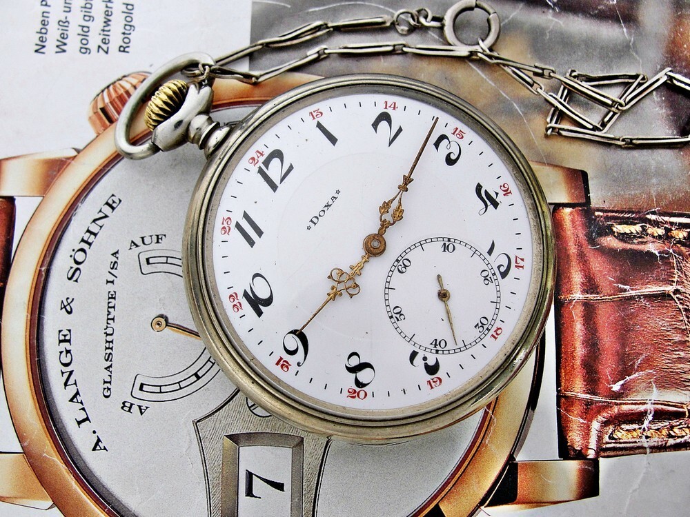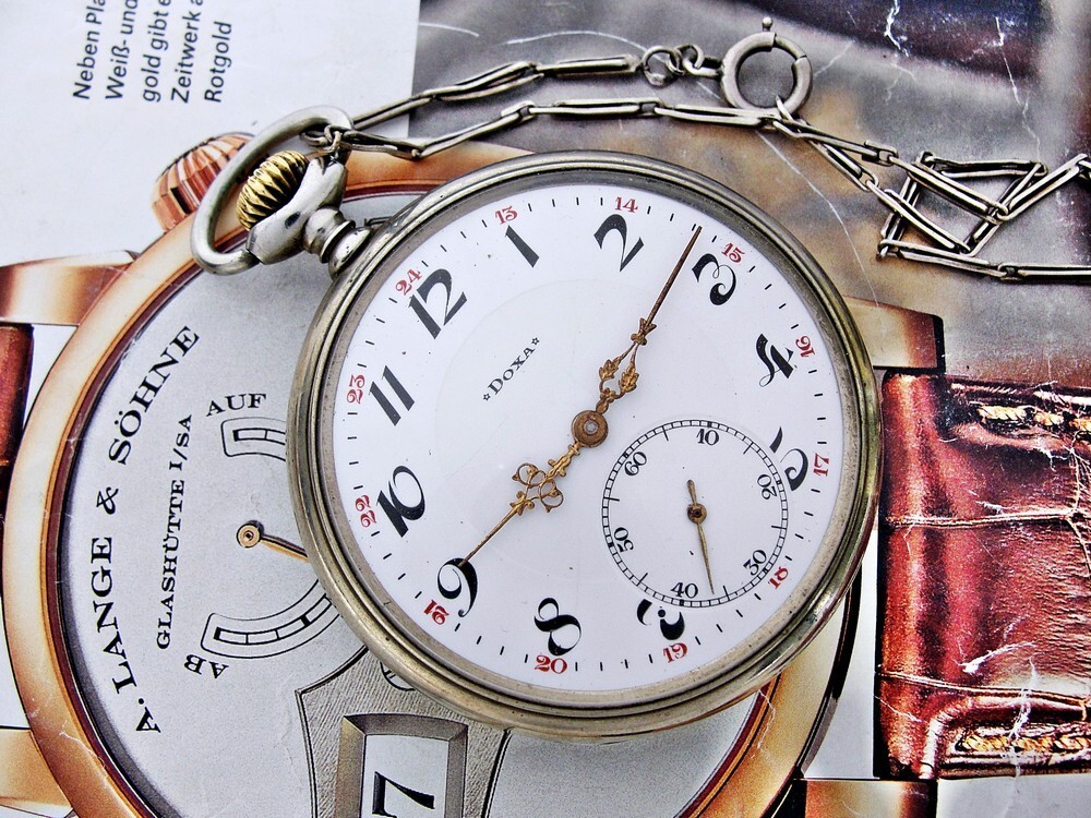 Nice Doxa pocket watch with porcelain dial and nice chain from the 1920