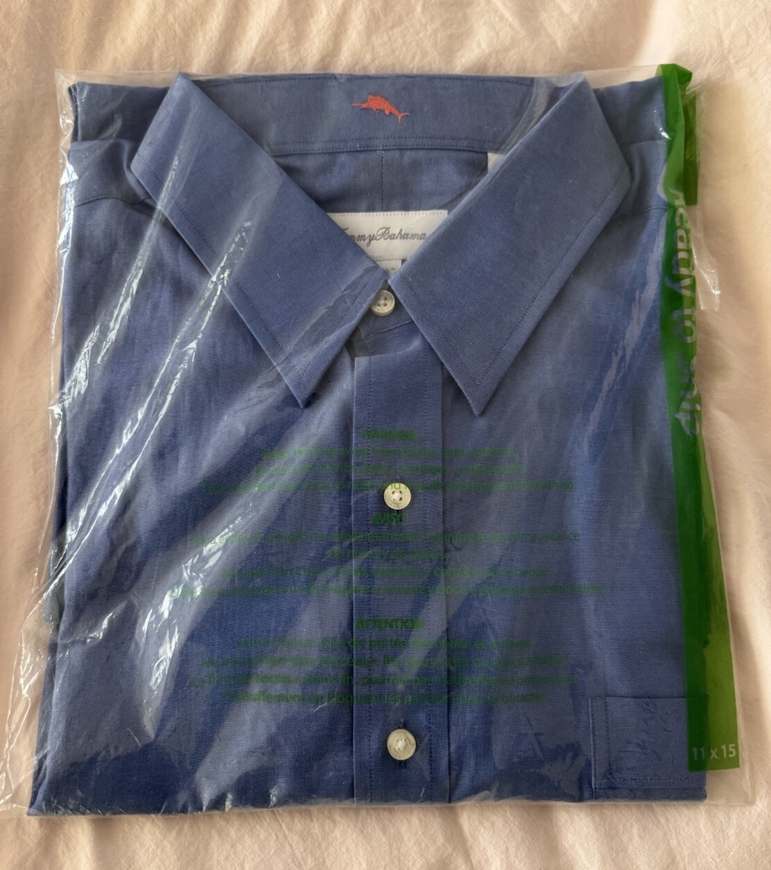 NWT Tommy Bahama Blue Dress Shirt, 100 Cotton, button-down 16.5 x 34-35