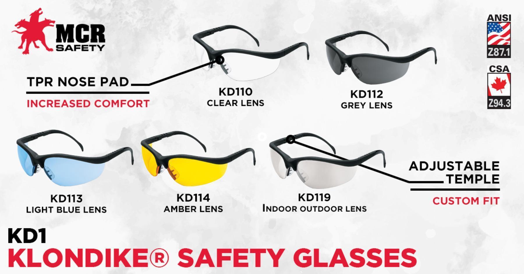 MCR Safety KD119 Klondike Plus Safety Glasses Indoor/Outdoor Clear Mirror Lens R