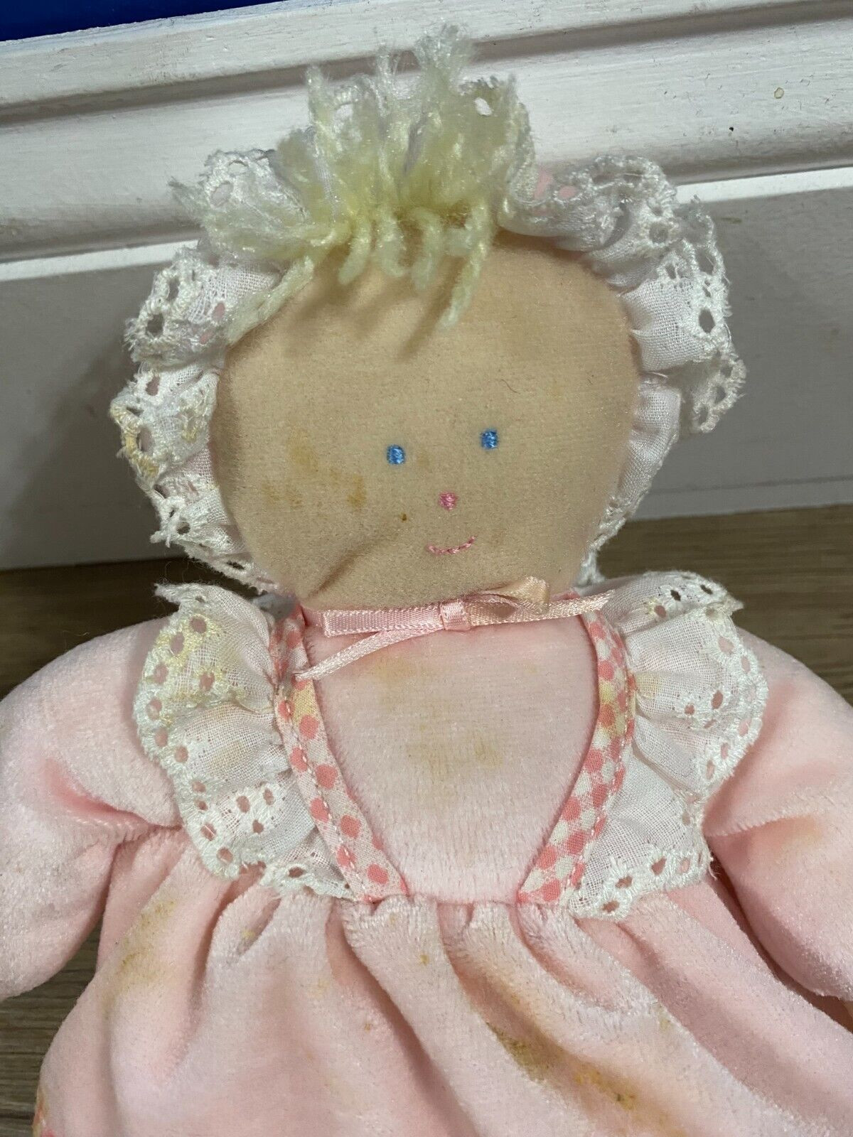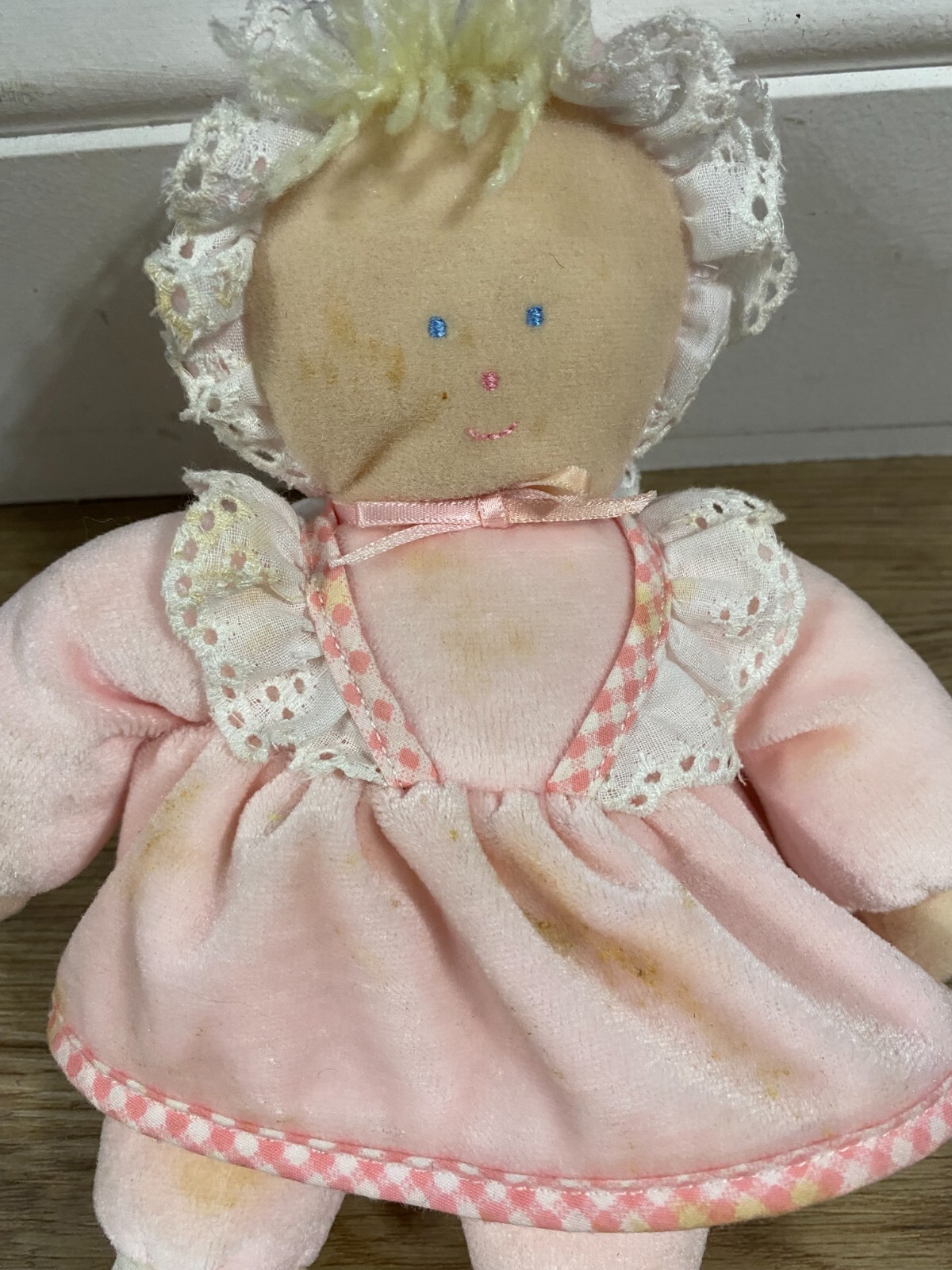 как выглядит Vintage Eden Wind Up Doll Musical 9" Pink Velour/eyelet Plush Stained фото