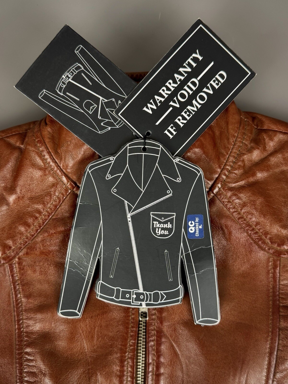 как выглядит Women s 100 Leather Zip Jacket Thin Slim Fit Dark Camel Tan SMALL NWT фото