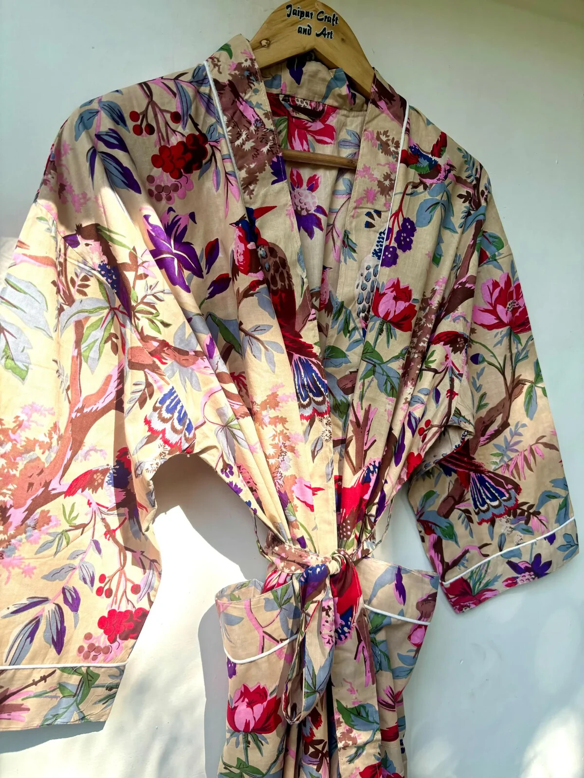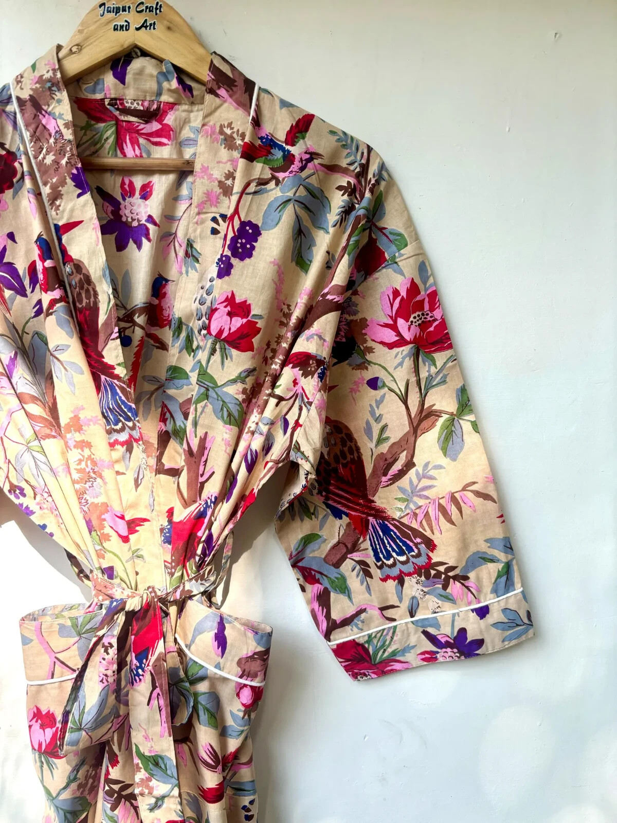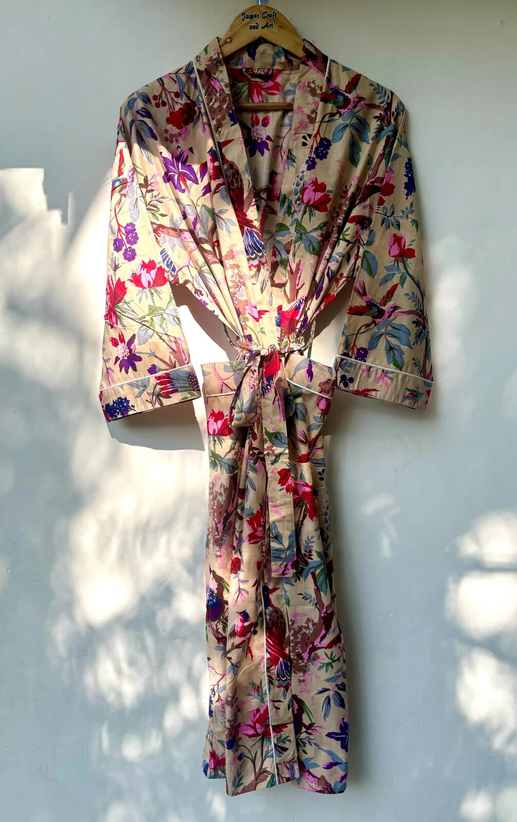 Indian Handmade 100 Cotton Floral Printed Bath Robe Dressing Gown Long Kimono