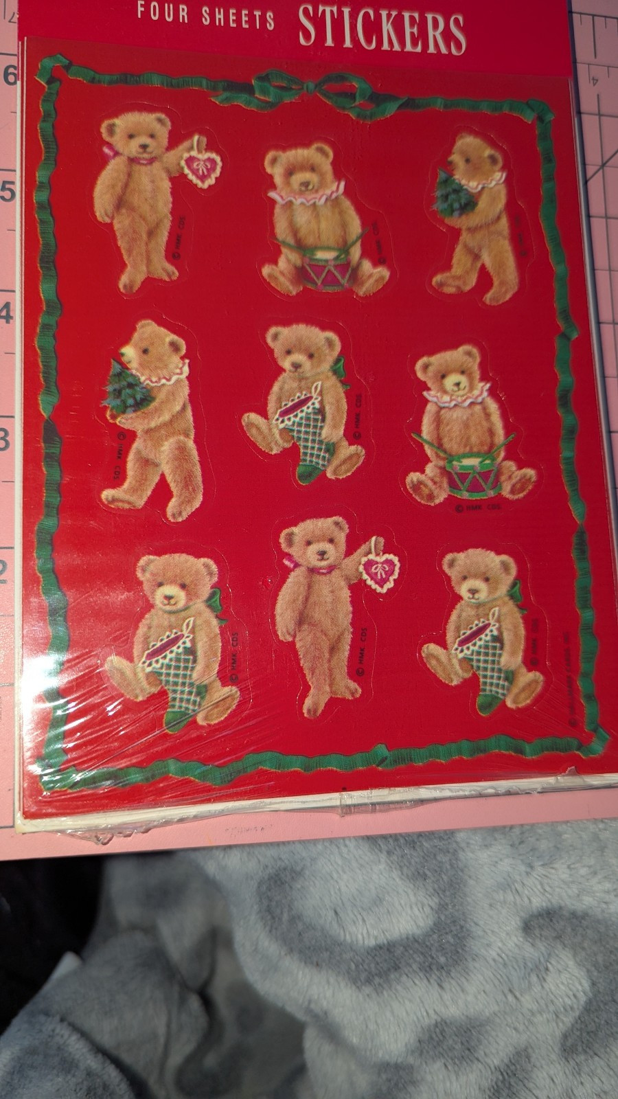 как выглядит Vintage Hallmark Stickers Christmas Teddy Bears Stocking 4 Sheets New In Pack фото