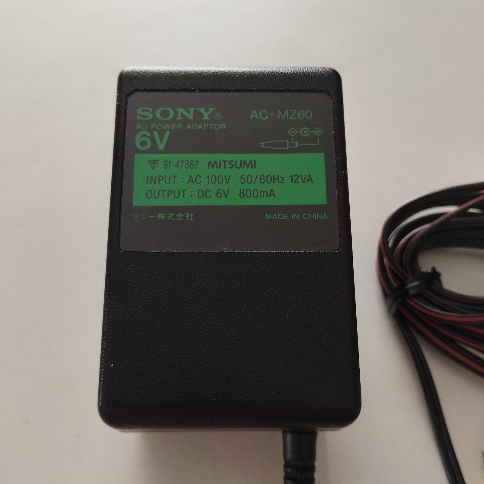 как выглядит Sony AC-MZ60A 6V 800mA Power Adapter Charger Original - Used For MD Player фото