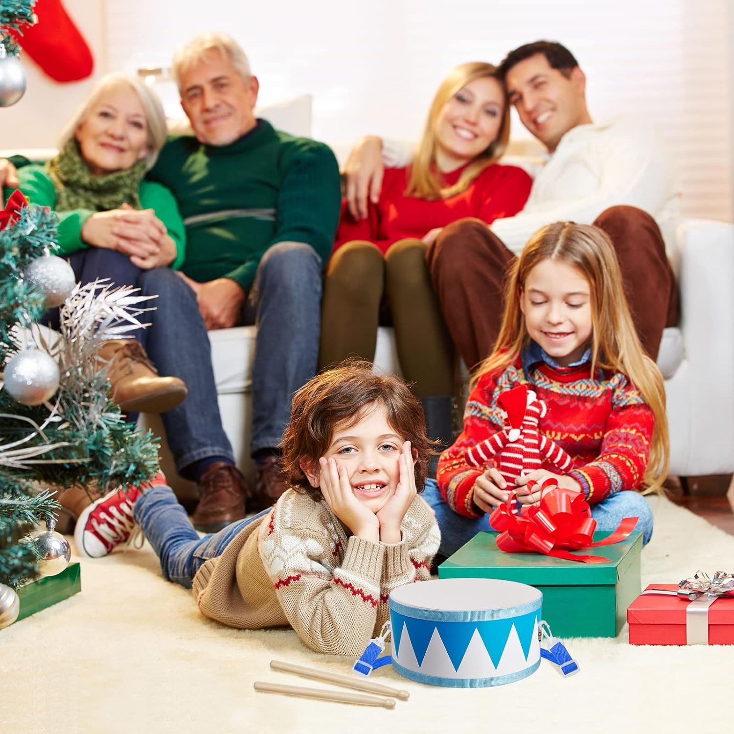 Kids Drum Set 7.87 in Wooden Toy Drum with Adjustable Strap 2 Drumsticks Educati